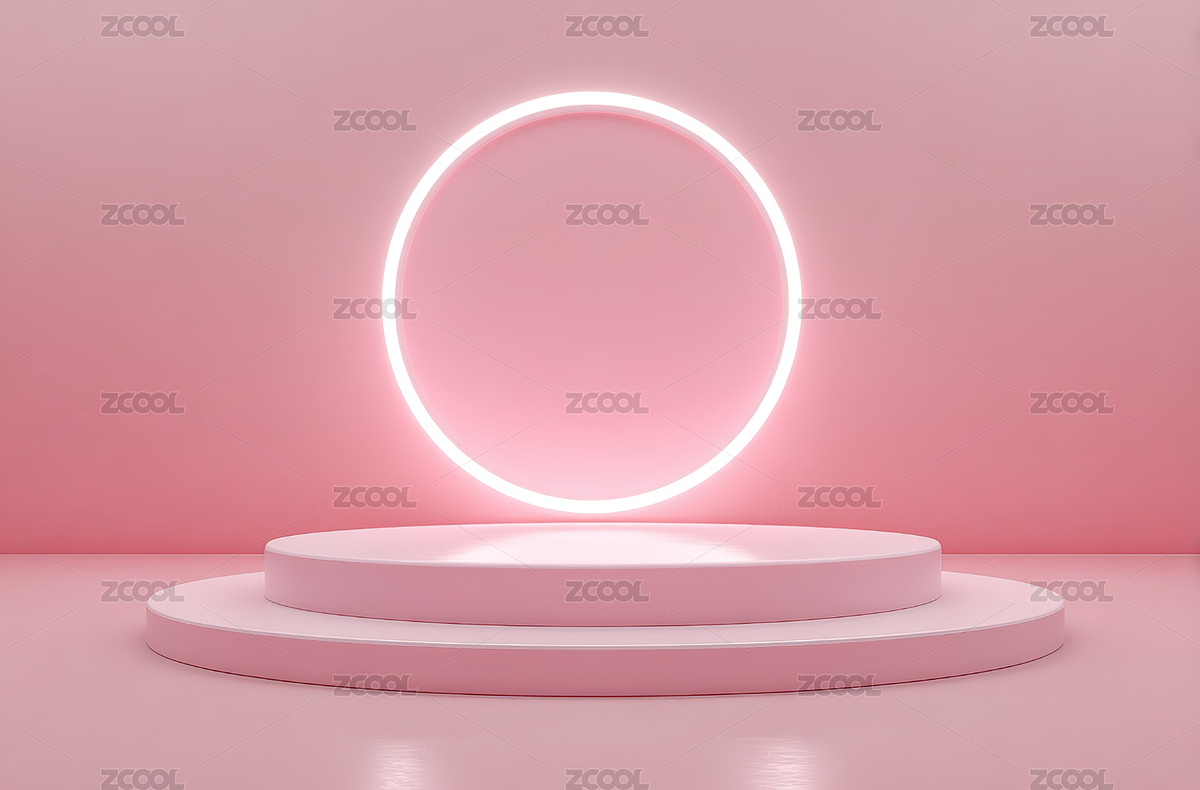 粉色,背景,圆形,光圈,平台,三层,简洁,现代,几何,光影