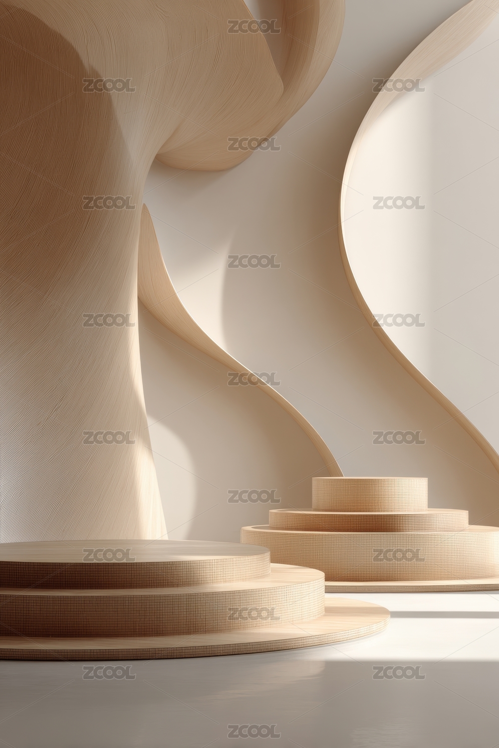 柔和阳光下的简约曲线空间