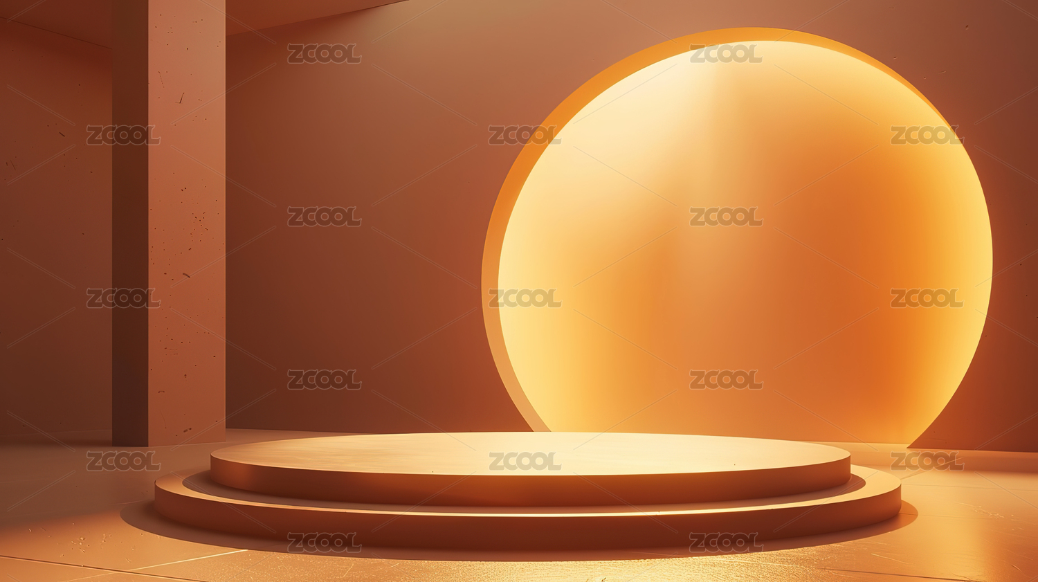 温暖室内洒满阳光的电商木质展台美妆壁纸