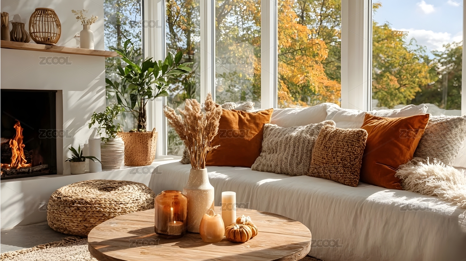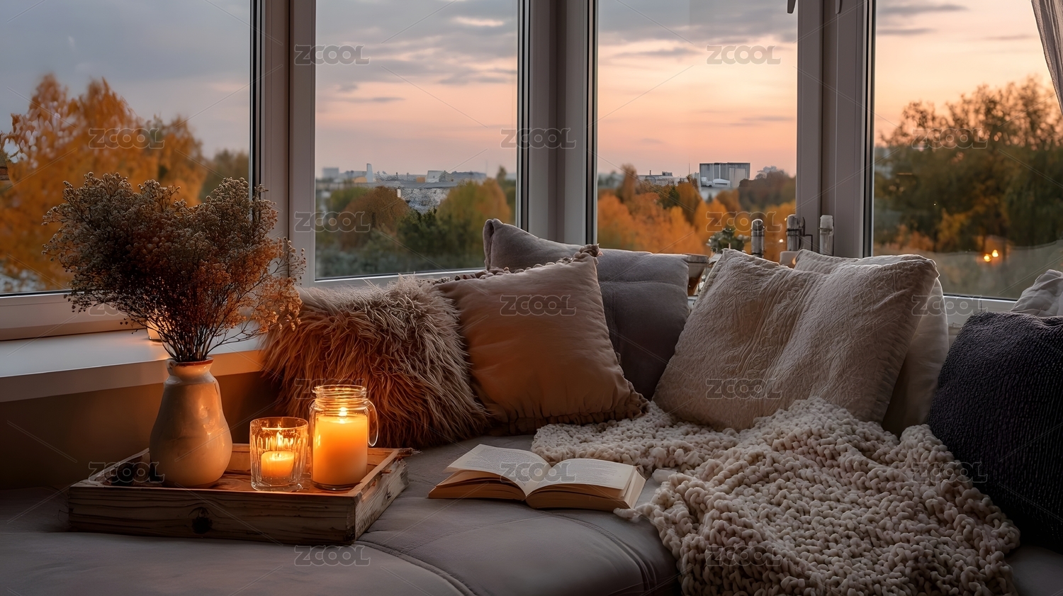 秋日窗景温馨室内
