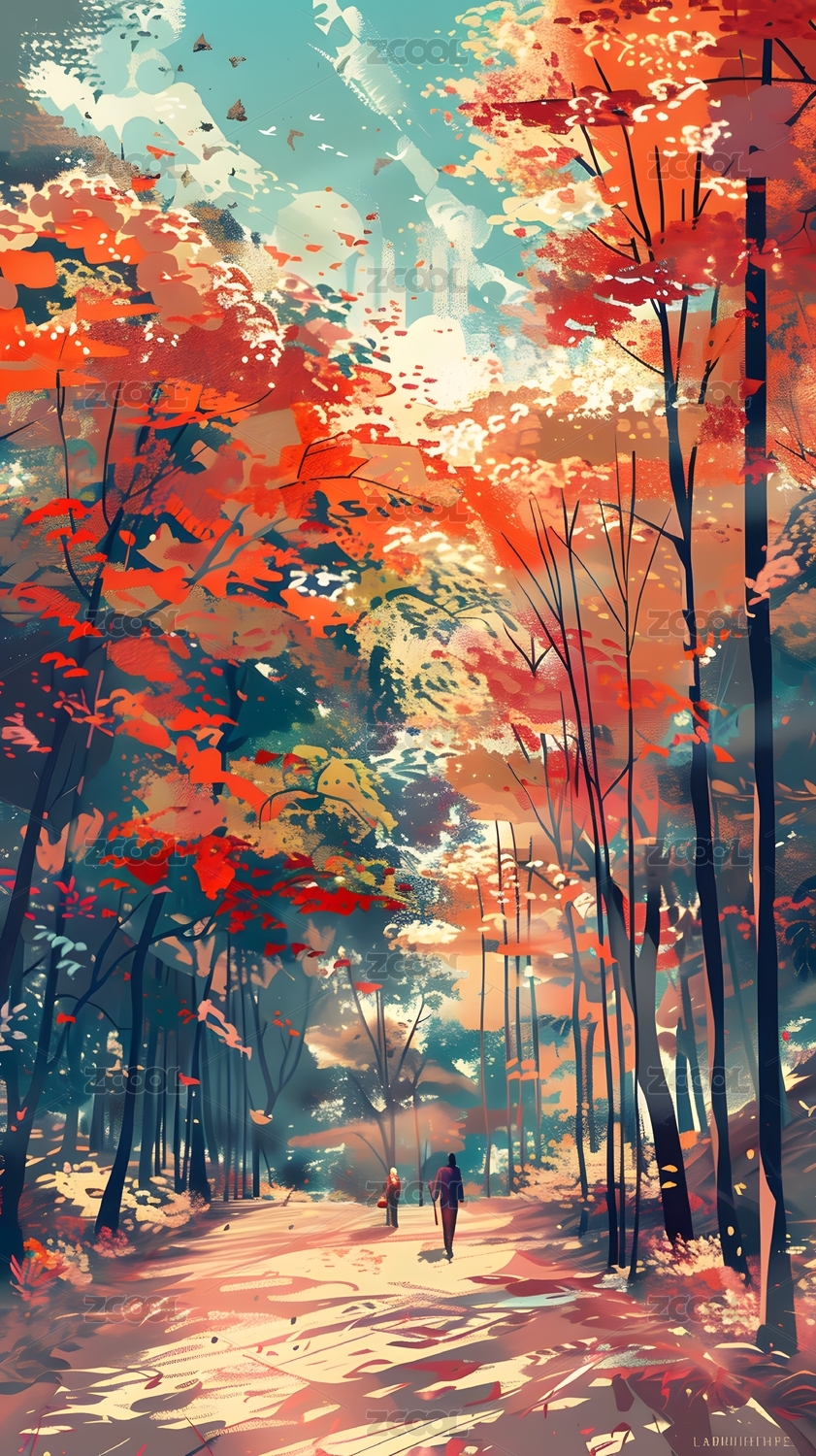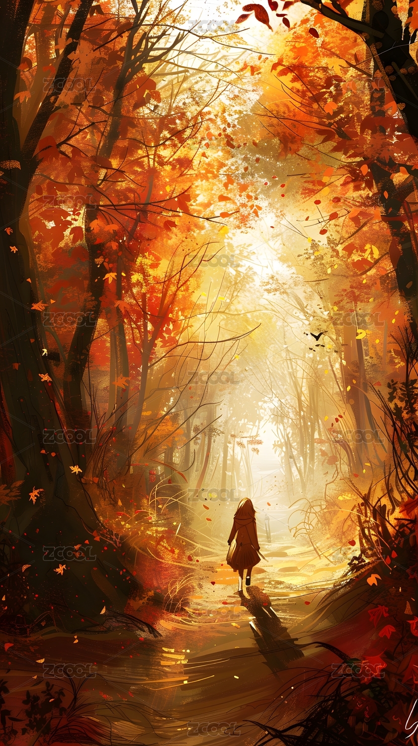 自然,背景,秋日森林,小松鼠,彩叶,飘落树叶,森林小径,石块,静谧,美好