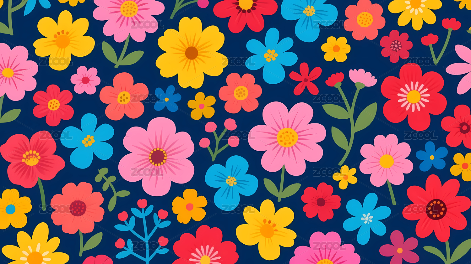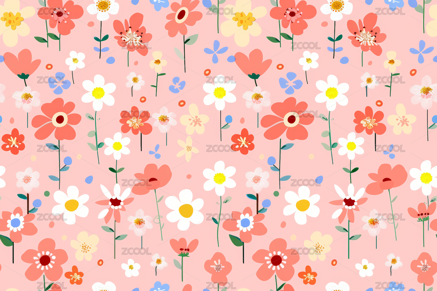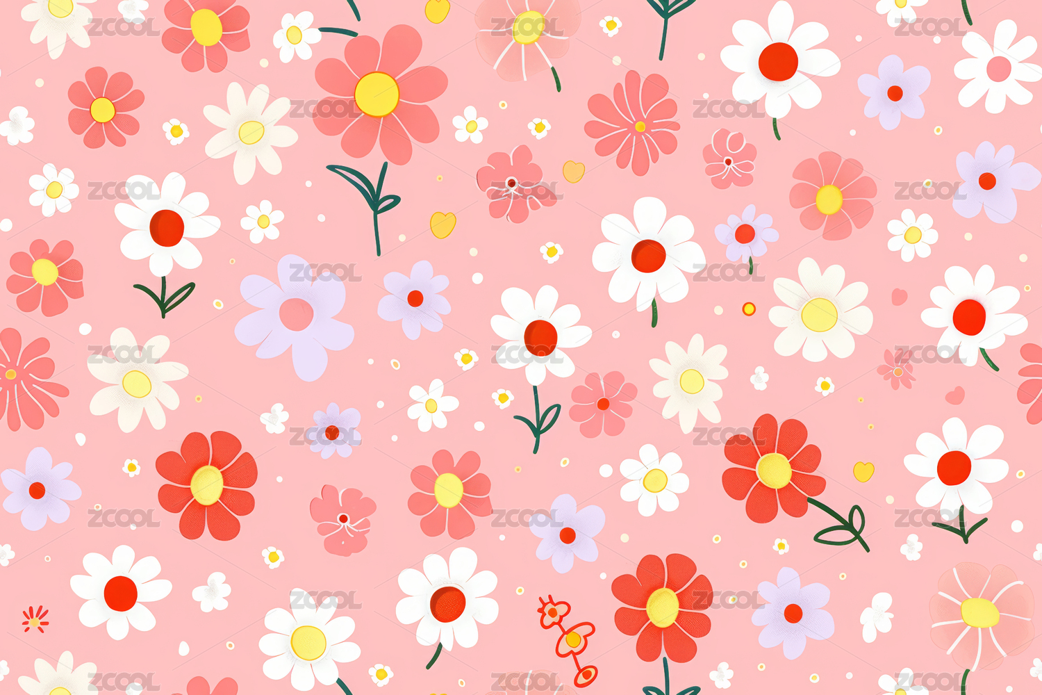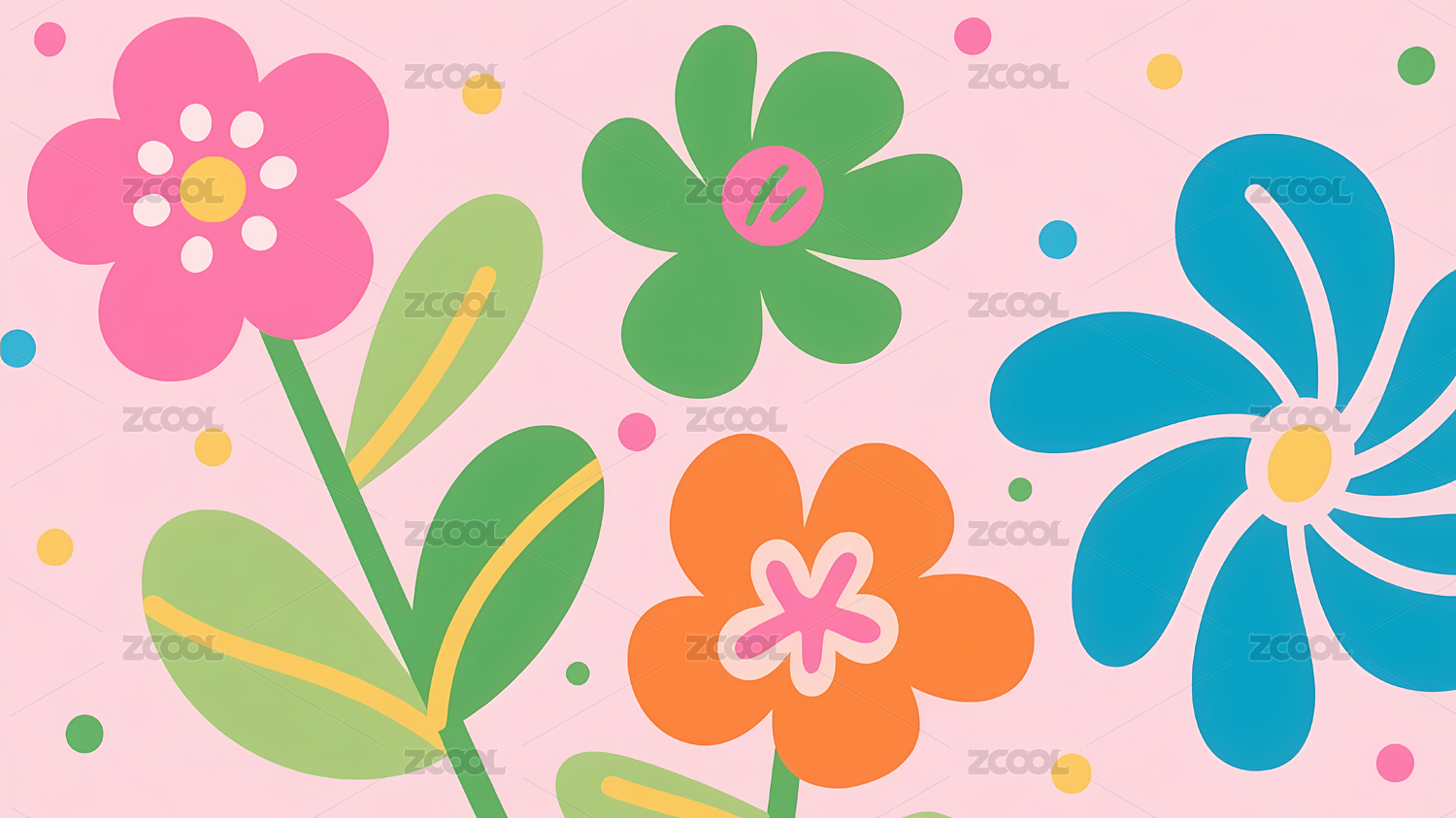 花卉,花朵,图案,插画,红色,粉色,蓝色,白色,圆点,装饰