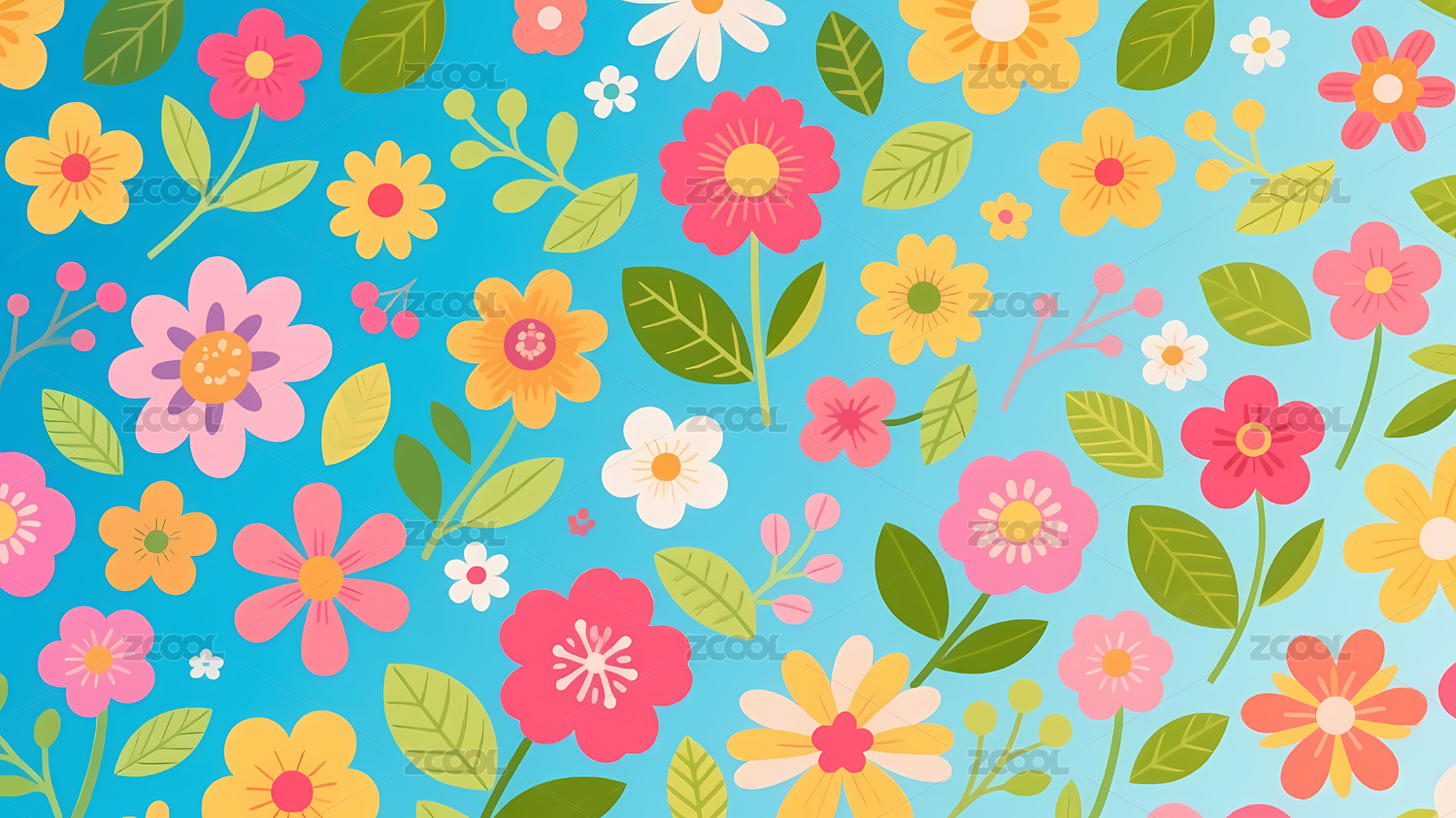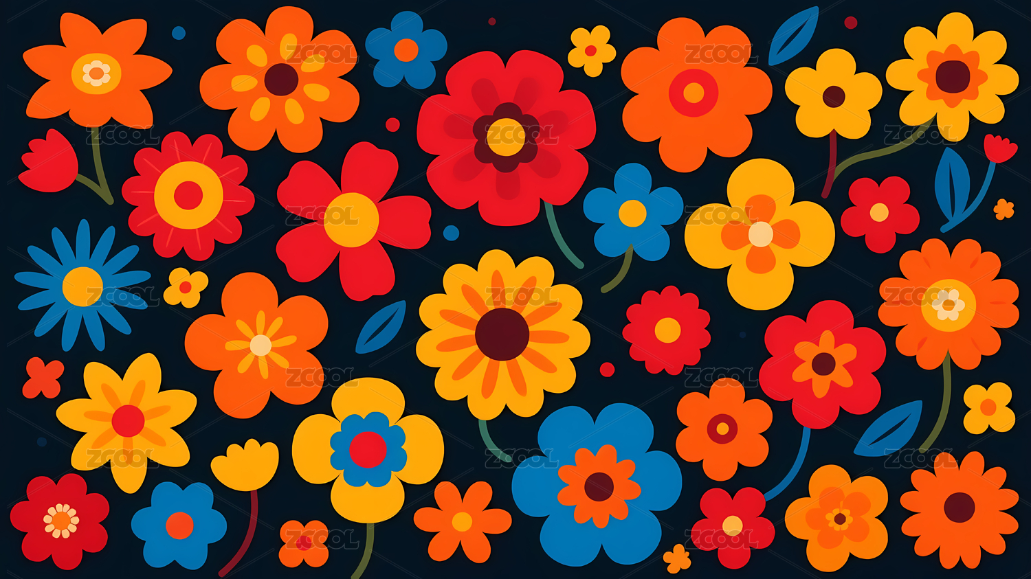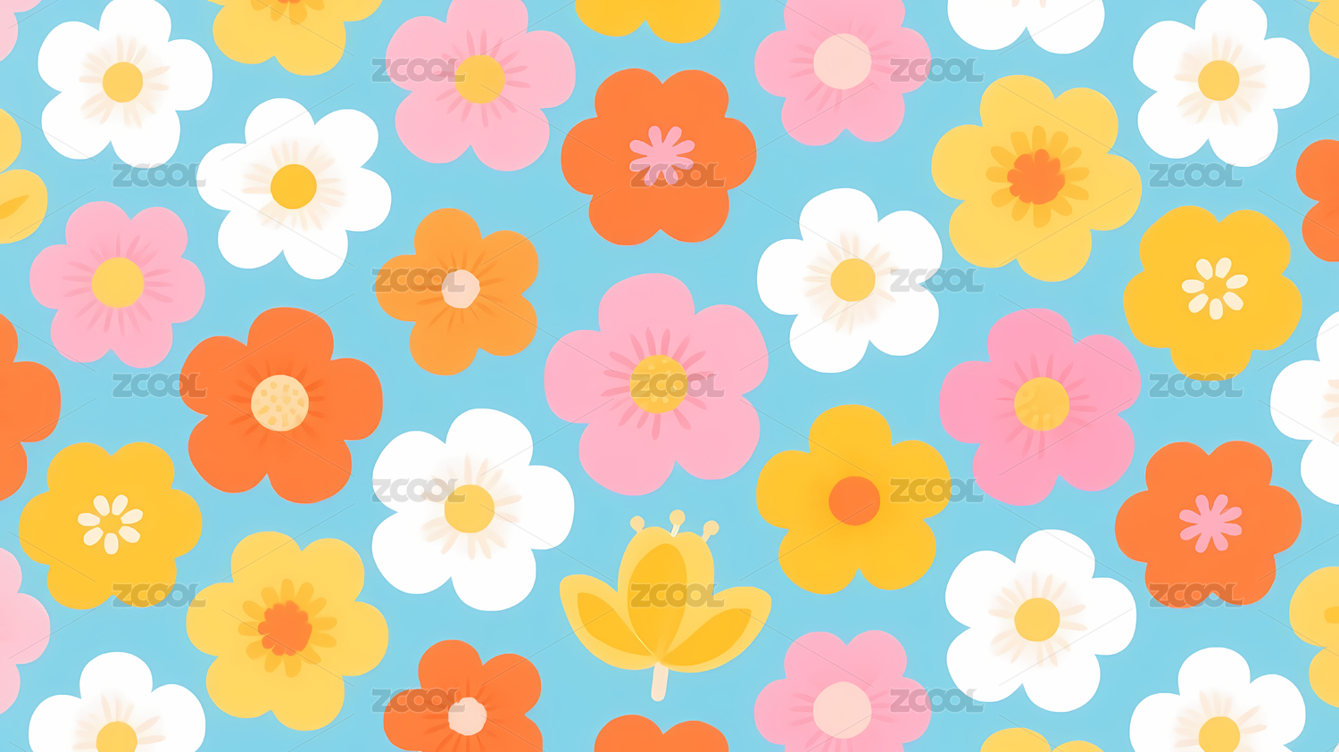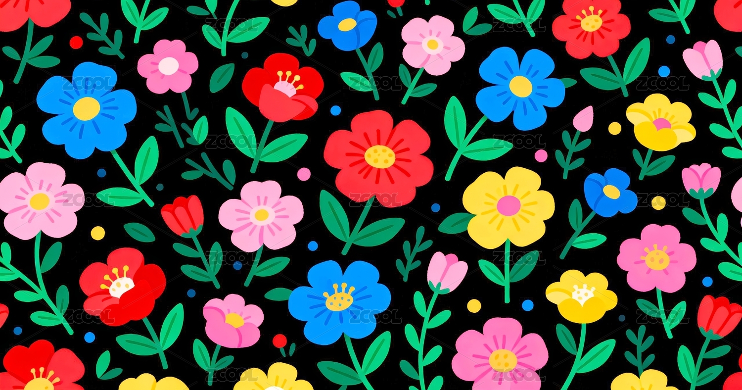 花卉,花朵,图案,插画,红色,粉色,蓝色,白色,圆点,装饰