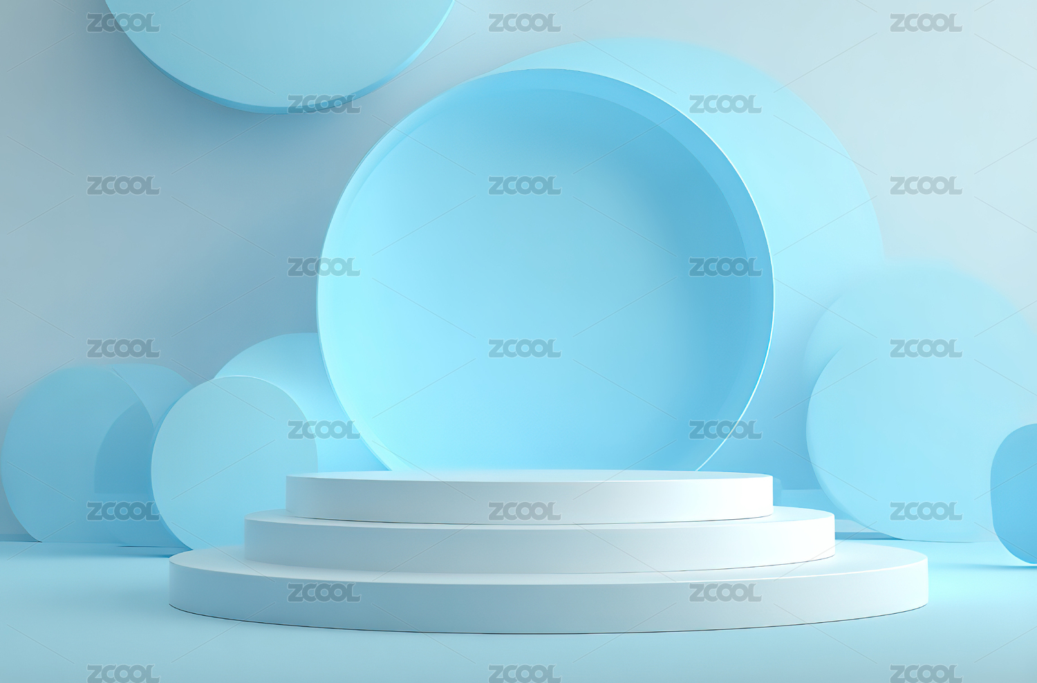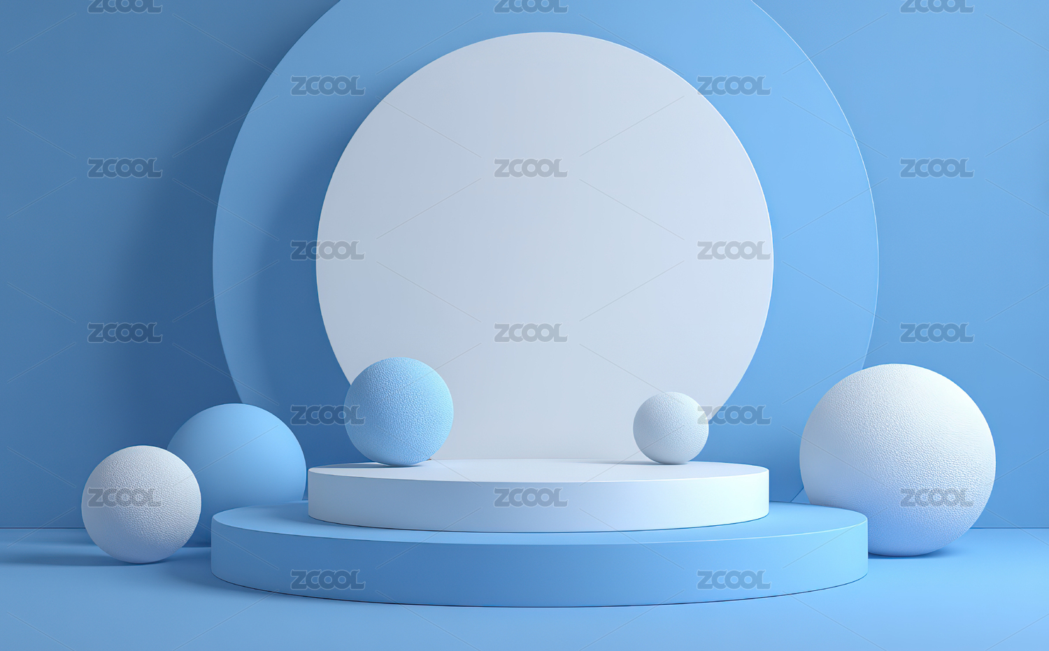 几何,圆形,平台,蓝色,球体,简约,现代,抽象,设计,背景