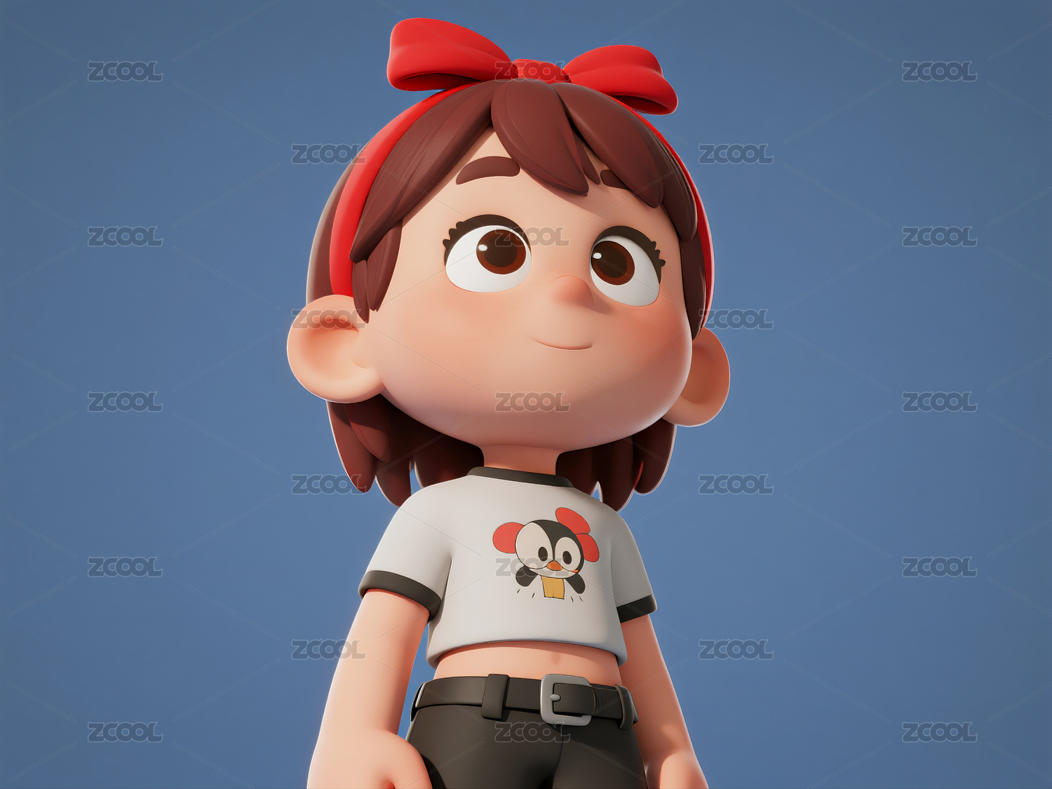 一个卡通人物穿着黄色衬衫和蓝色连衣裙特写