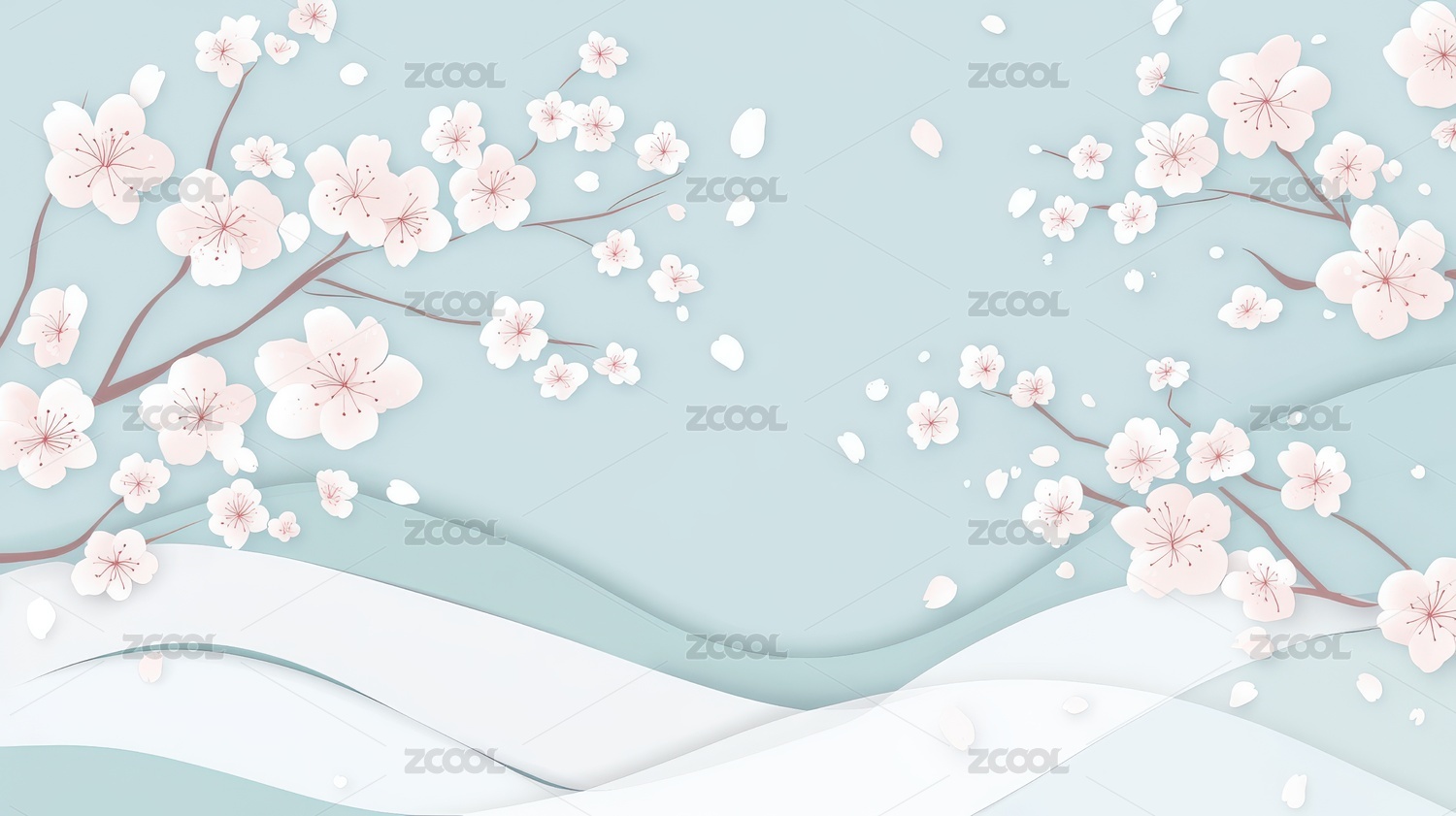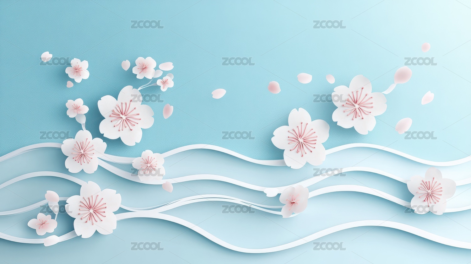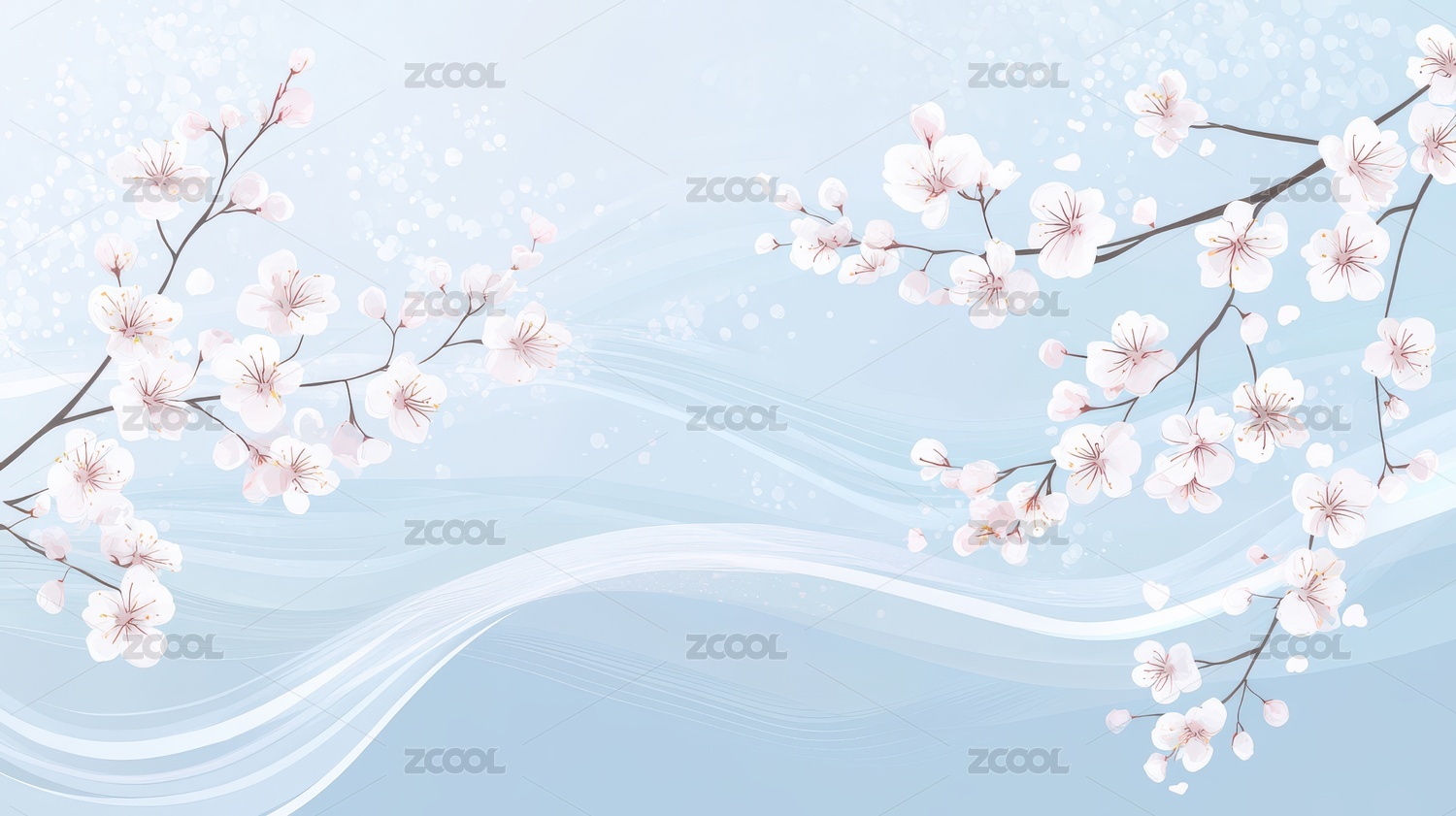 蓝色,背景,梦幻,波浪,花瓣,樱花,枝条,飘落