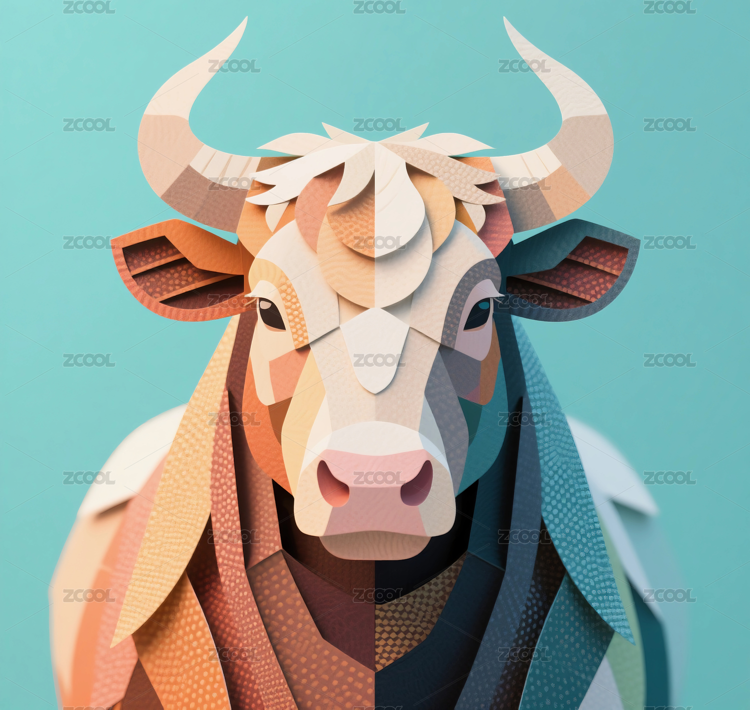 公牛剪纸风格的动物插画艺术