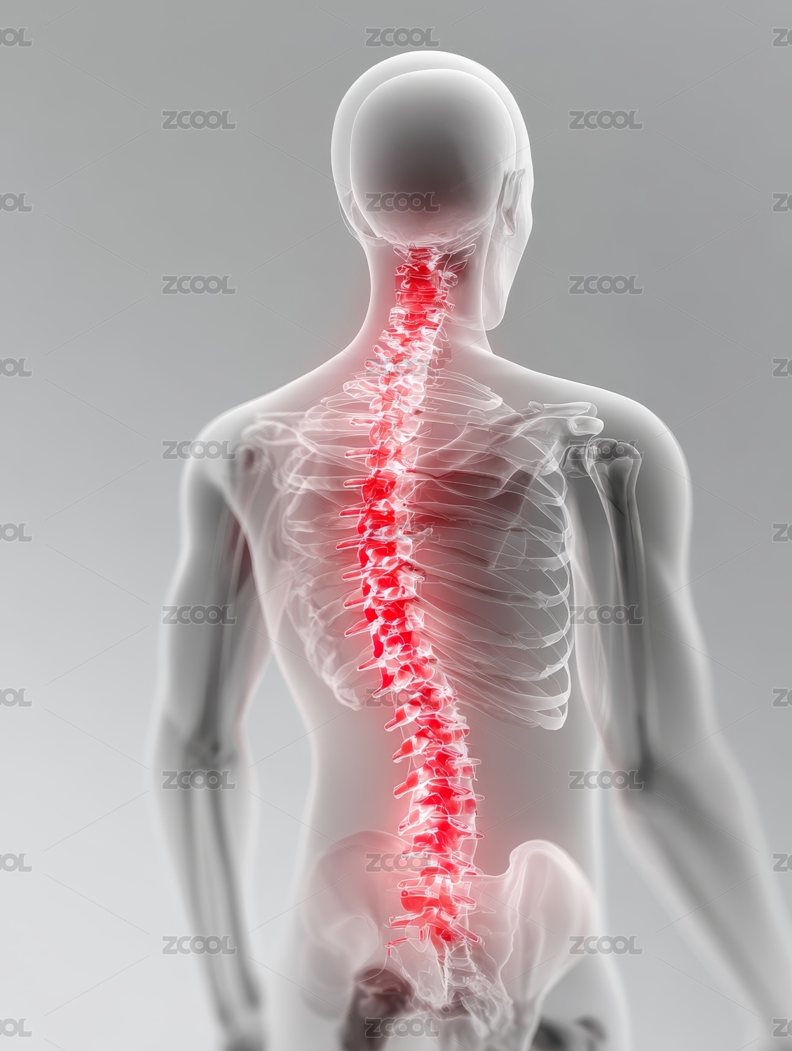 脊柱疼痛的人体透视图