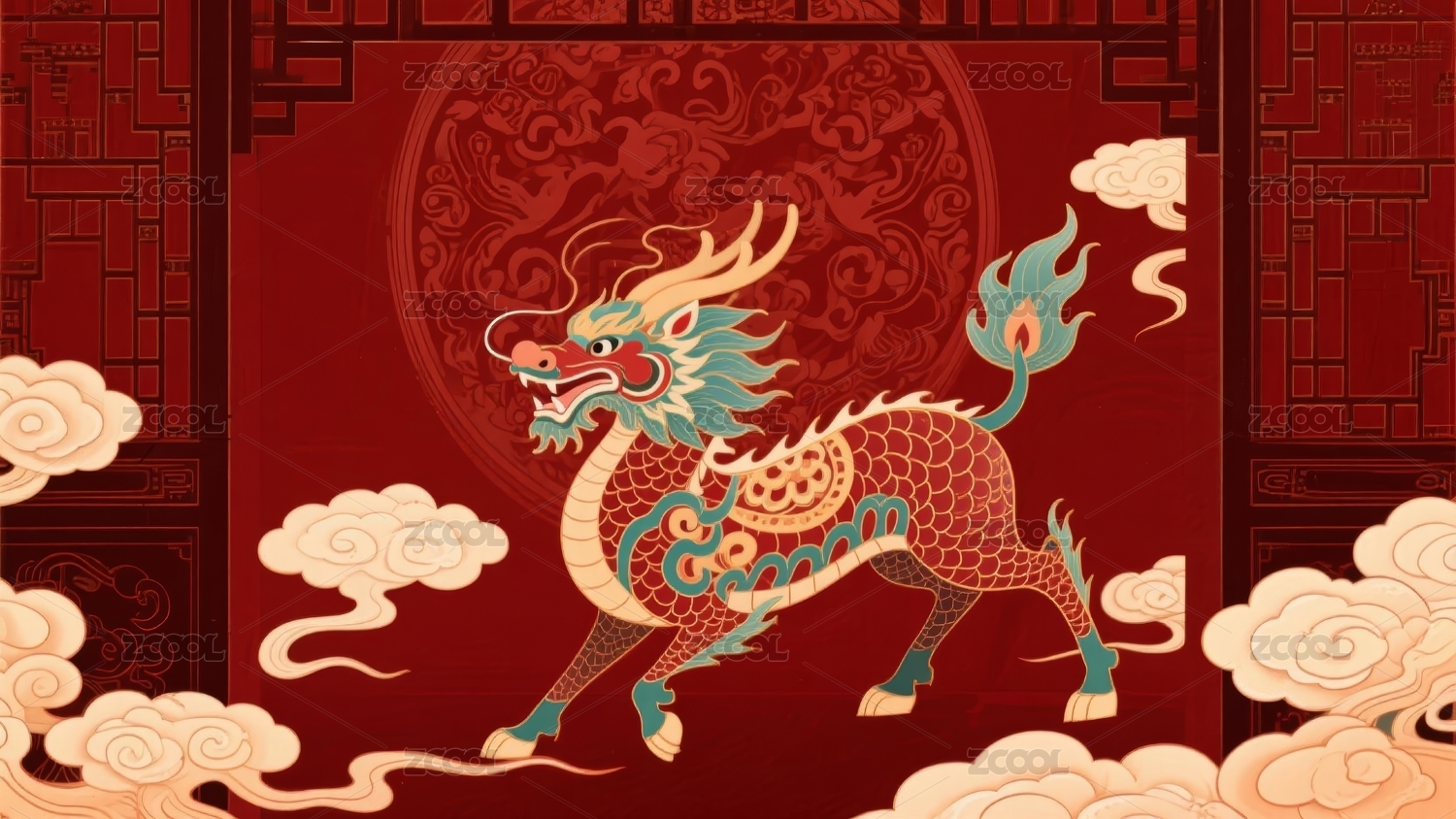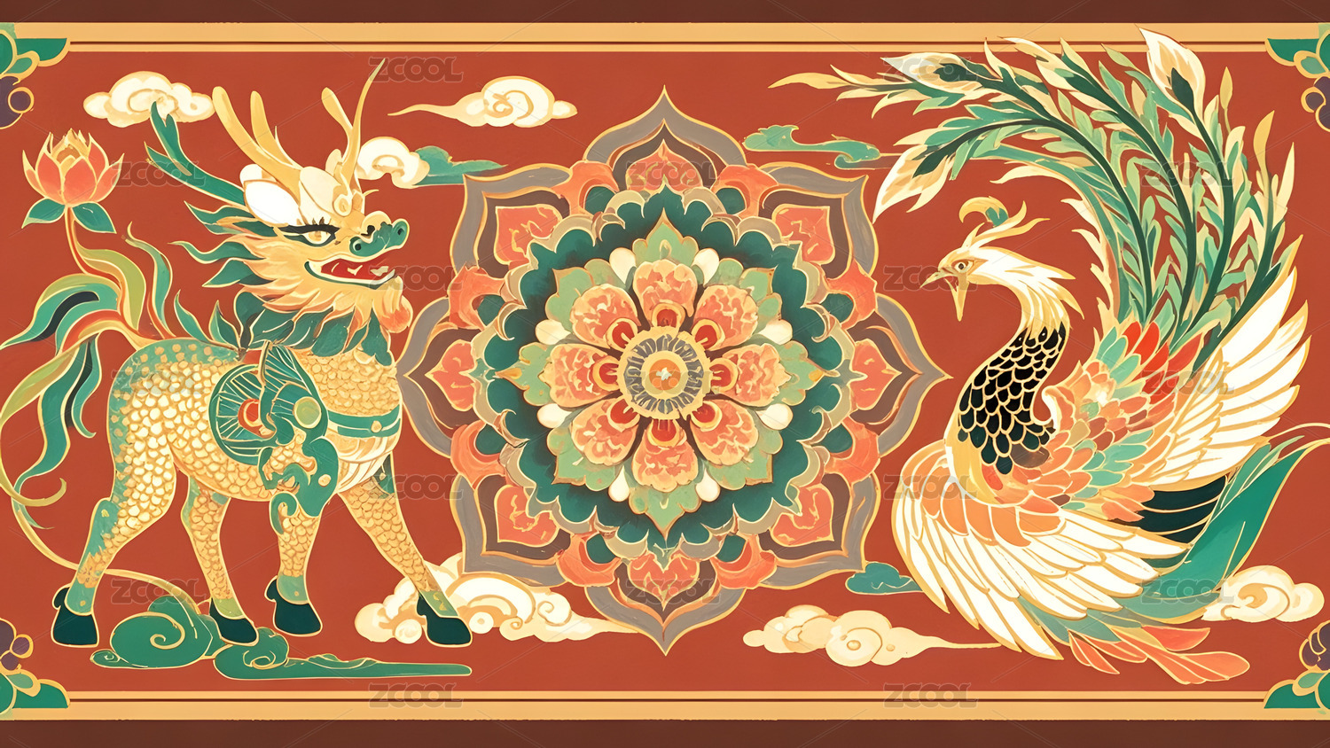 艺术,插画,创意,造型,氛围,双神兽,装饰,色彩,传统,文化