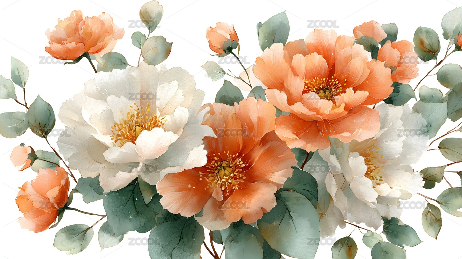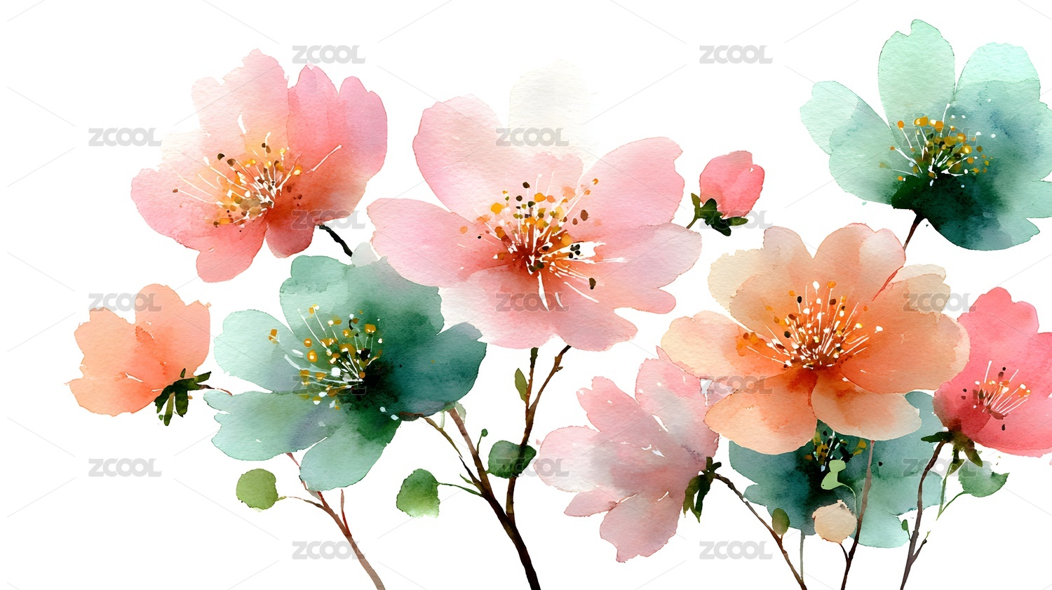 水彩花卉优雅绽放