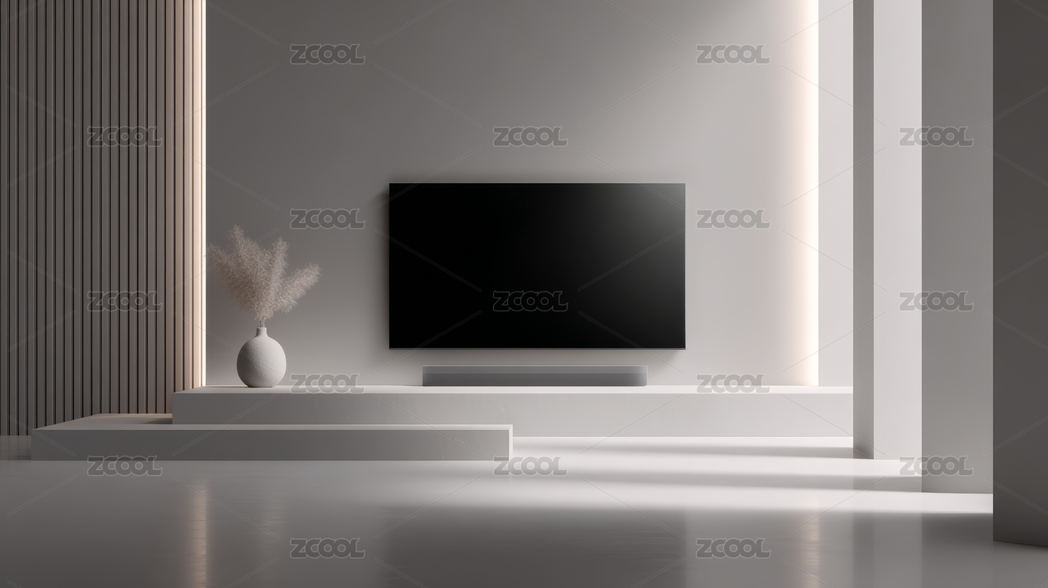 平板电视,简约风格,视觉焦点,室内设计,展示台,光线柔和,现代科技,墙面简洁,空间布局,家居装饰