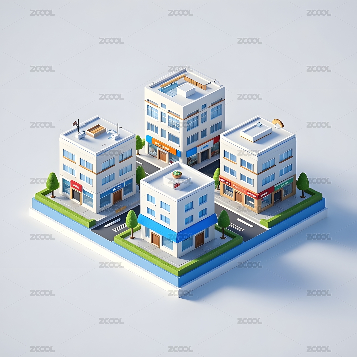 彩色建筑模型城市景观