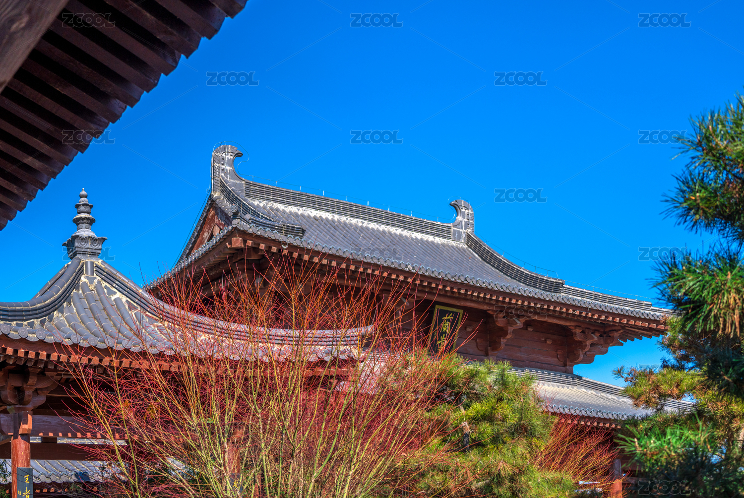 日本奈良兴福寺内神龛建筑屋顶局部特写