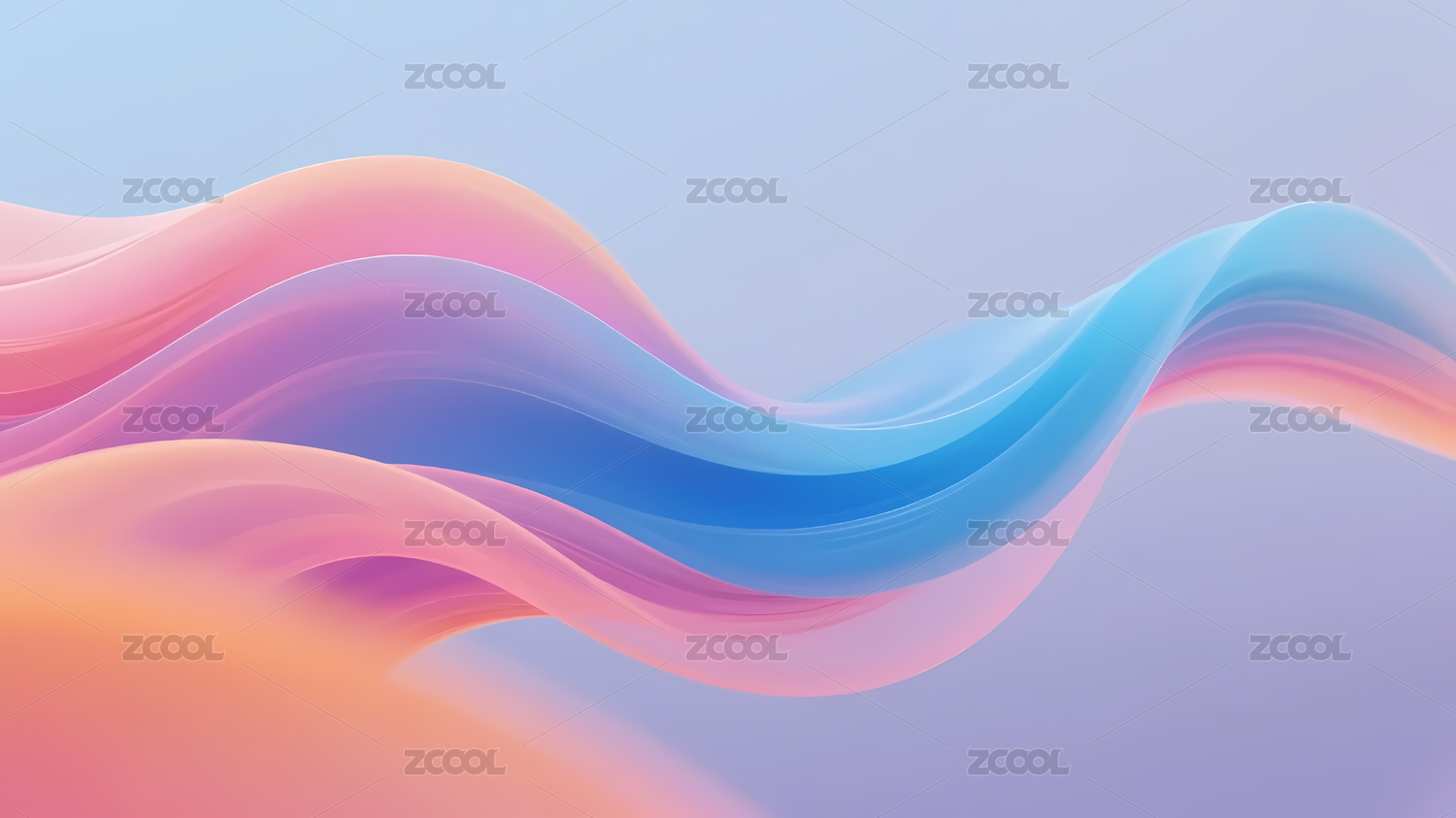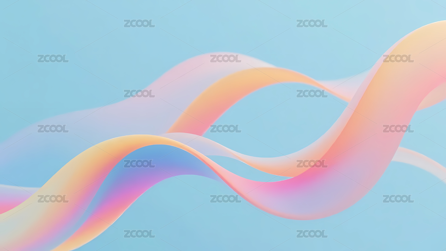 柔和粉蓝波浪线条