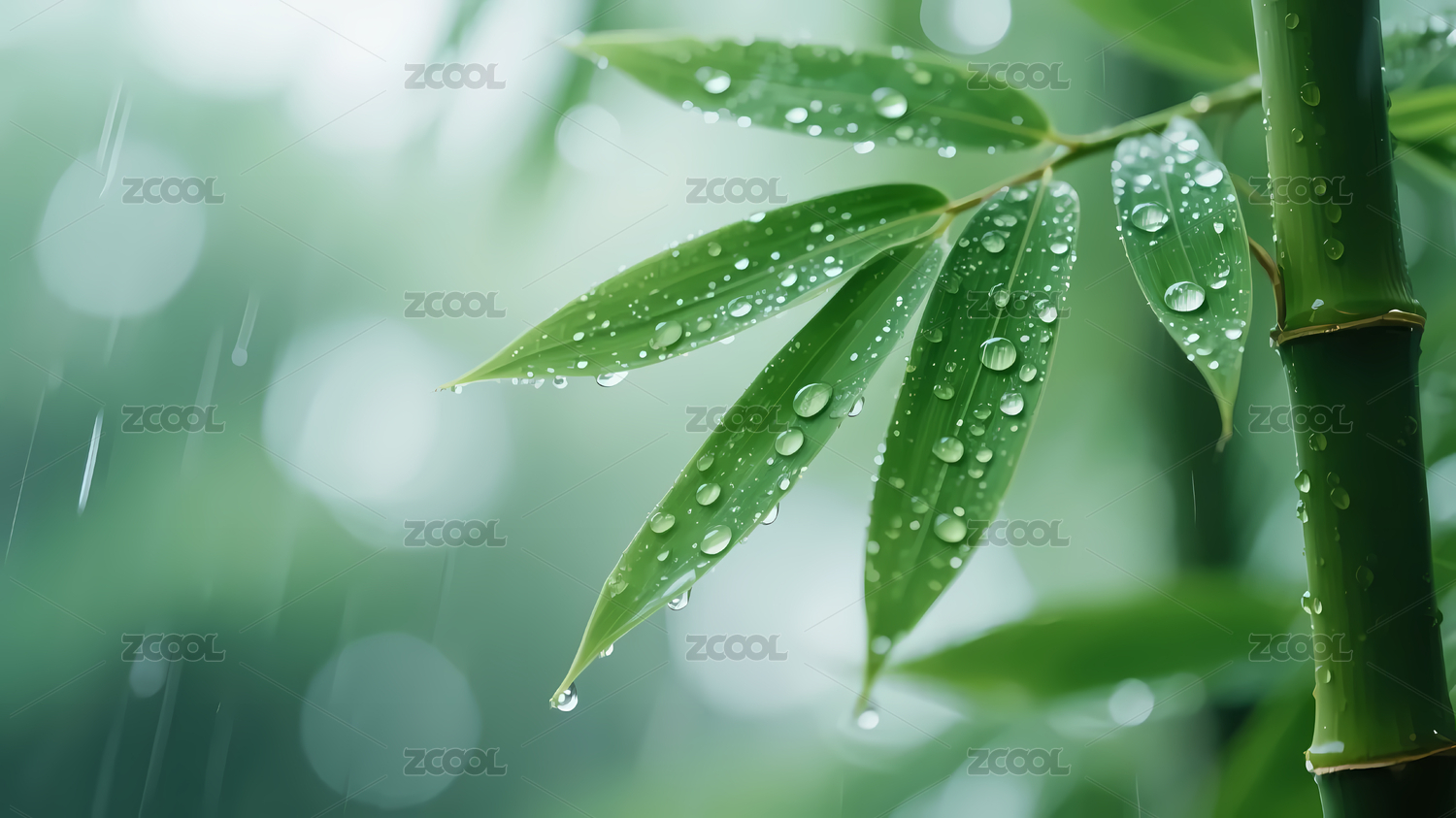 自然,清新,绿色,竹子,叶片,雨滴,湿润,竹林,雨雾,静谧