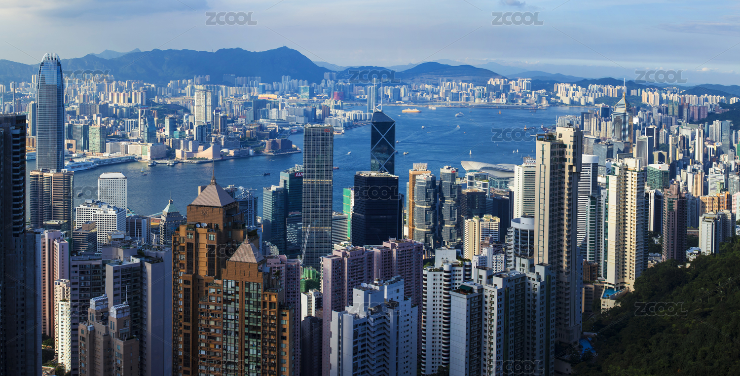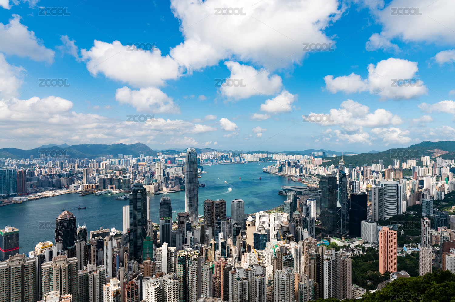 蓝天,白云,航拍,香港,晴天,海湾,维多利亚港,中国,城市