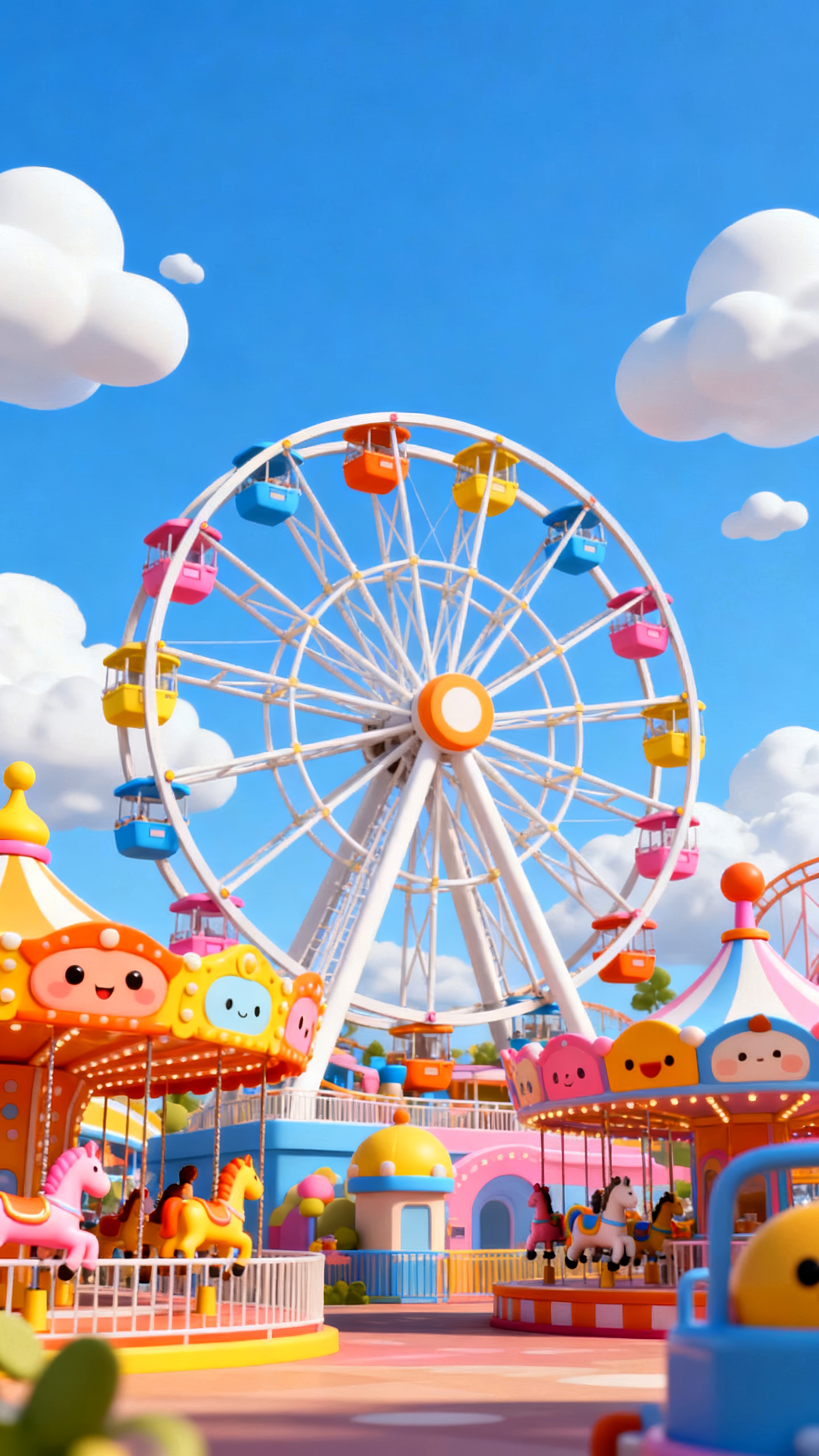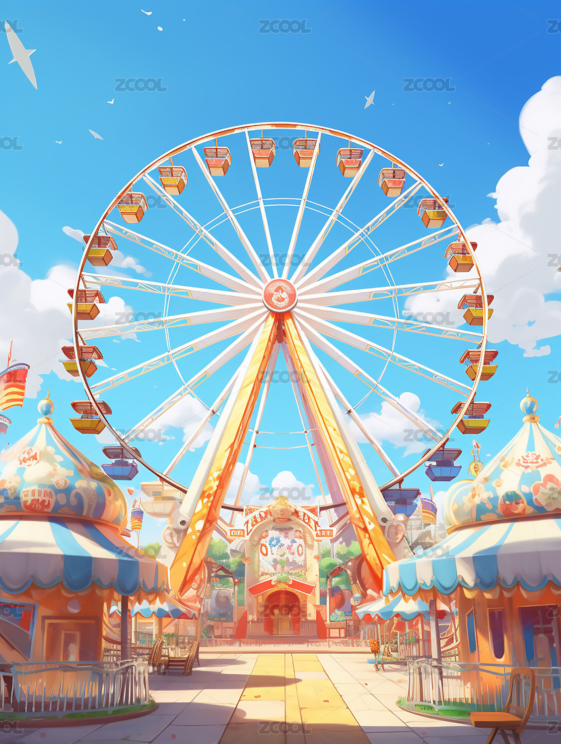 游乐园,欢乐,儿童,游乐,设施,秋千,童趣,蓝天,云朵,色彩
