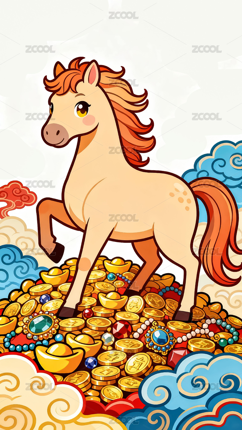 坐在金元宝上的马
