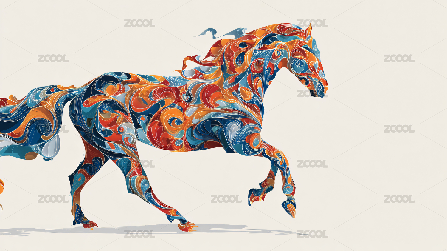 骏马,线条,彩色,艺术,头像,插画,动物,创意,色彩,动感