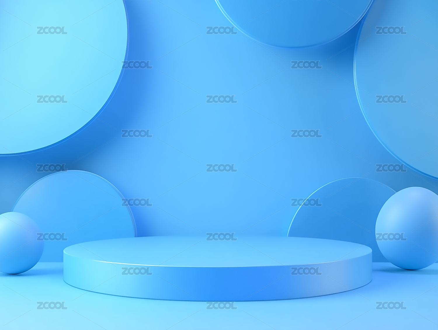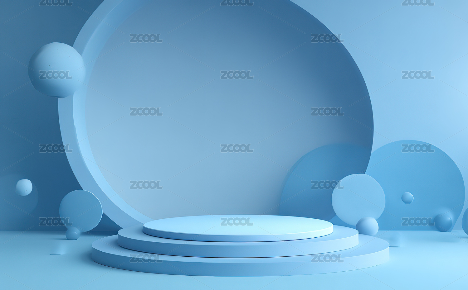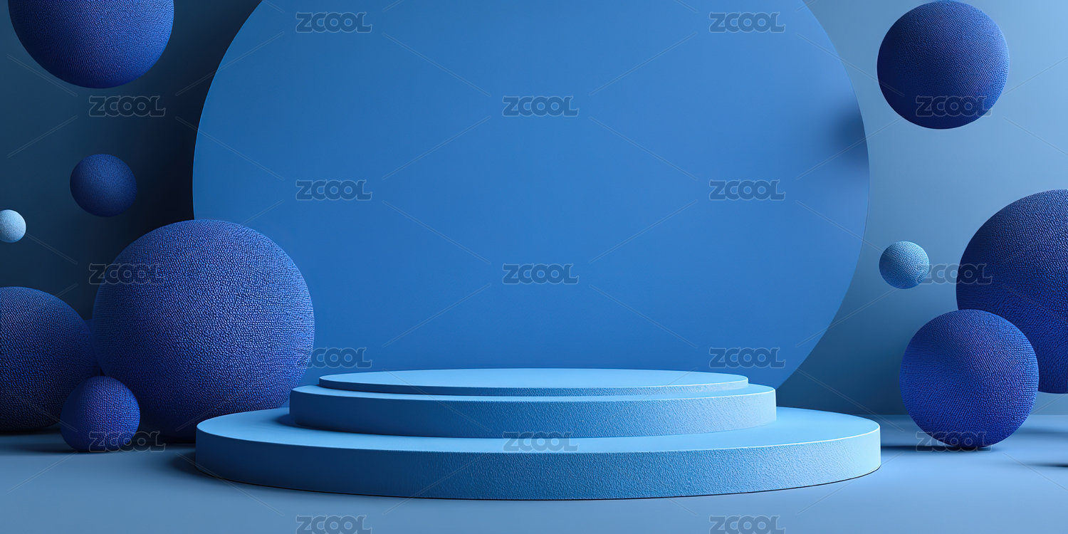 蓝色圆形背景的展示台
