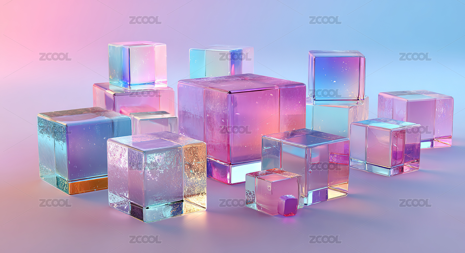 透明,立方体,彩色,光影,玻璃,几何,质感,现代,艺术,设计