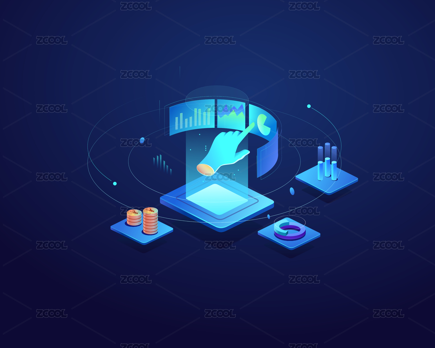 2.5D等距2020新年互联网金融概念渐变矢量背景插画