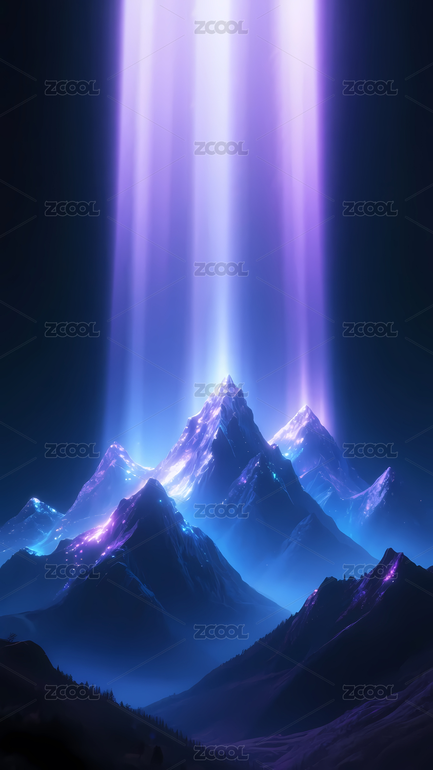 雪山与紫色光柱