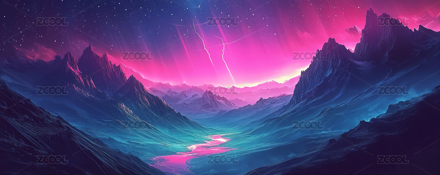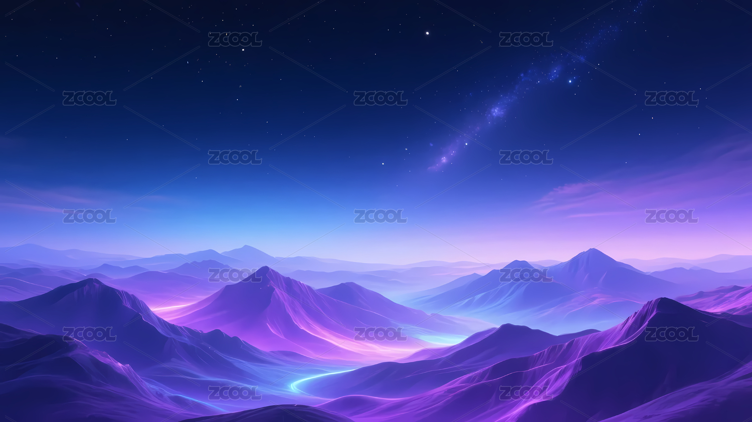 紫蓝山脉星空河流