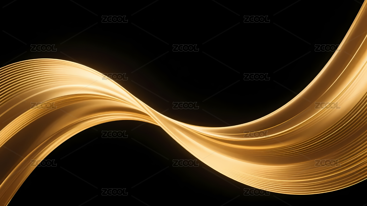 金色波浪曲线在黑色背景上