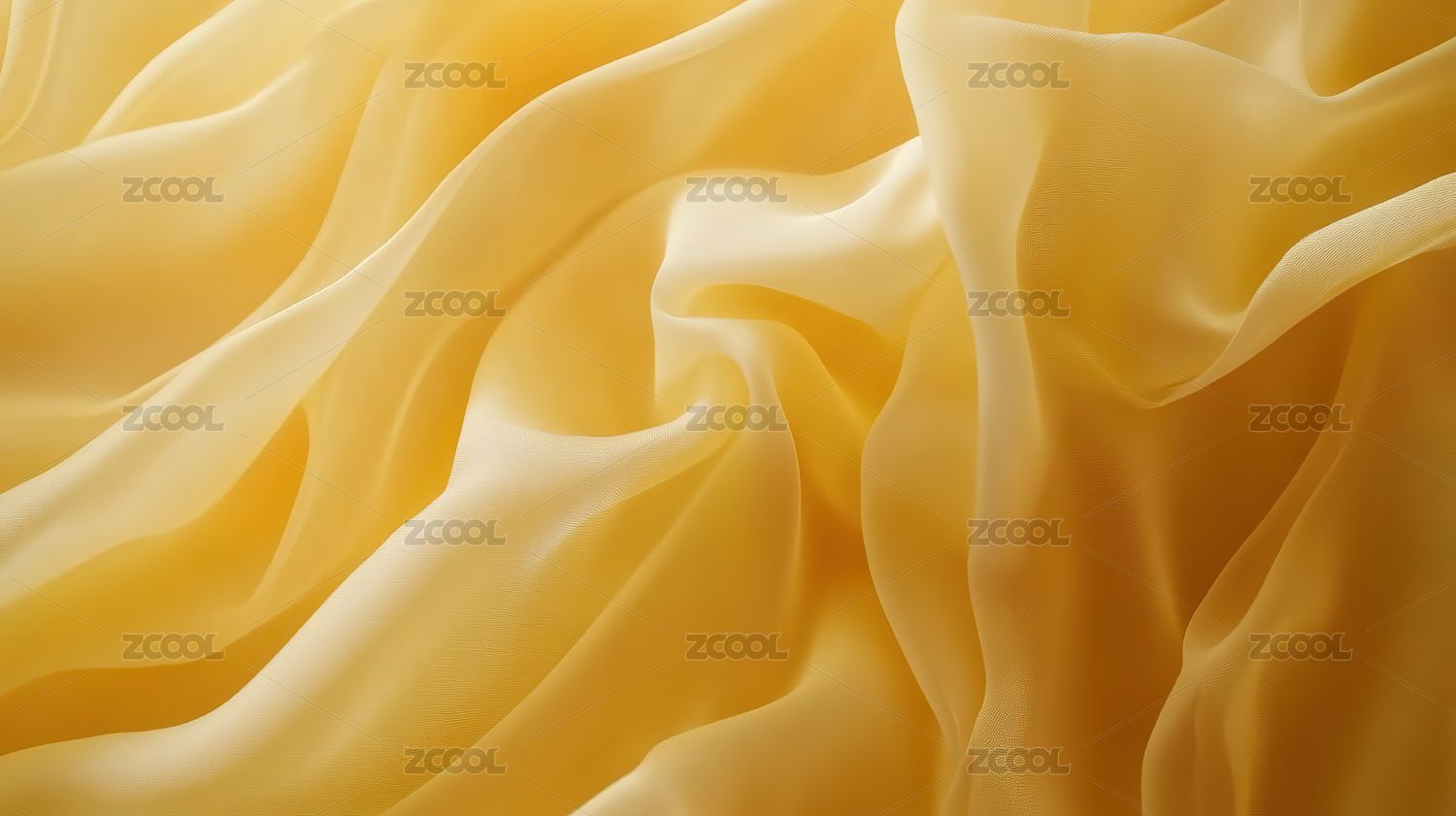 柔软的黄色布料褶皱呈现波浪状