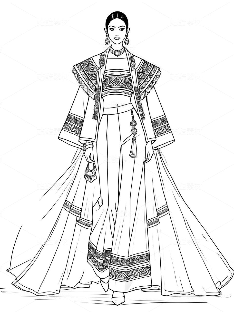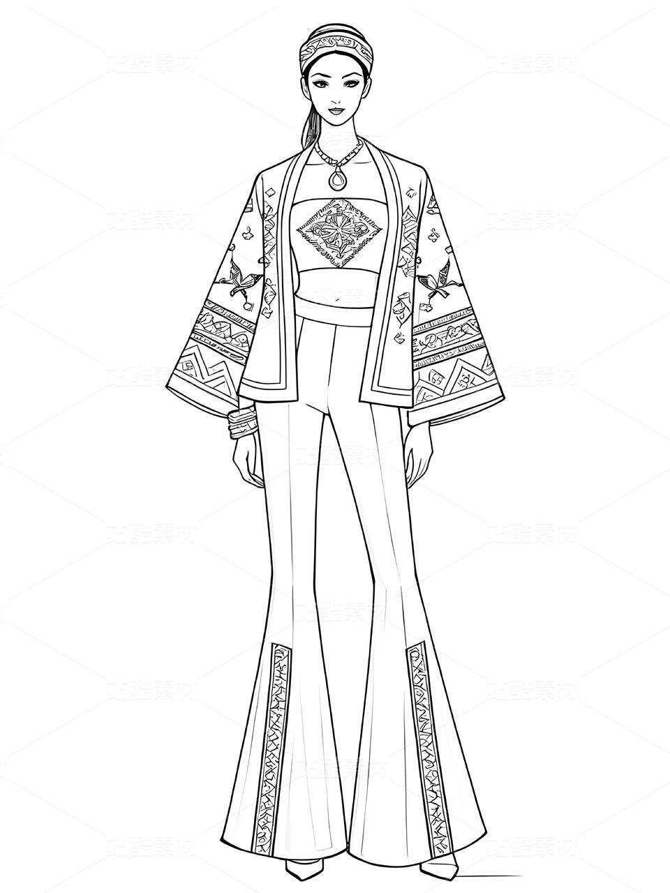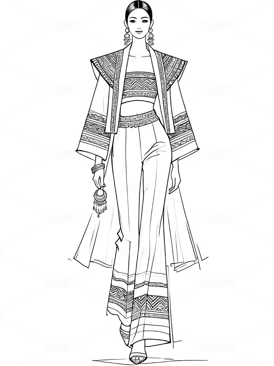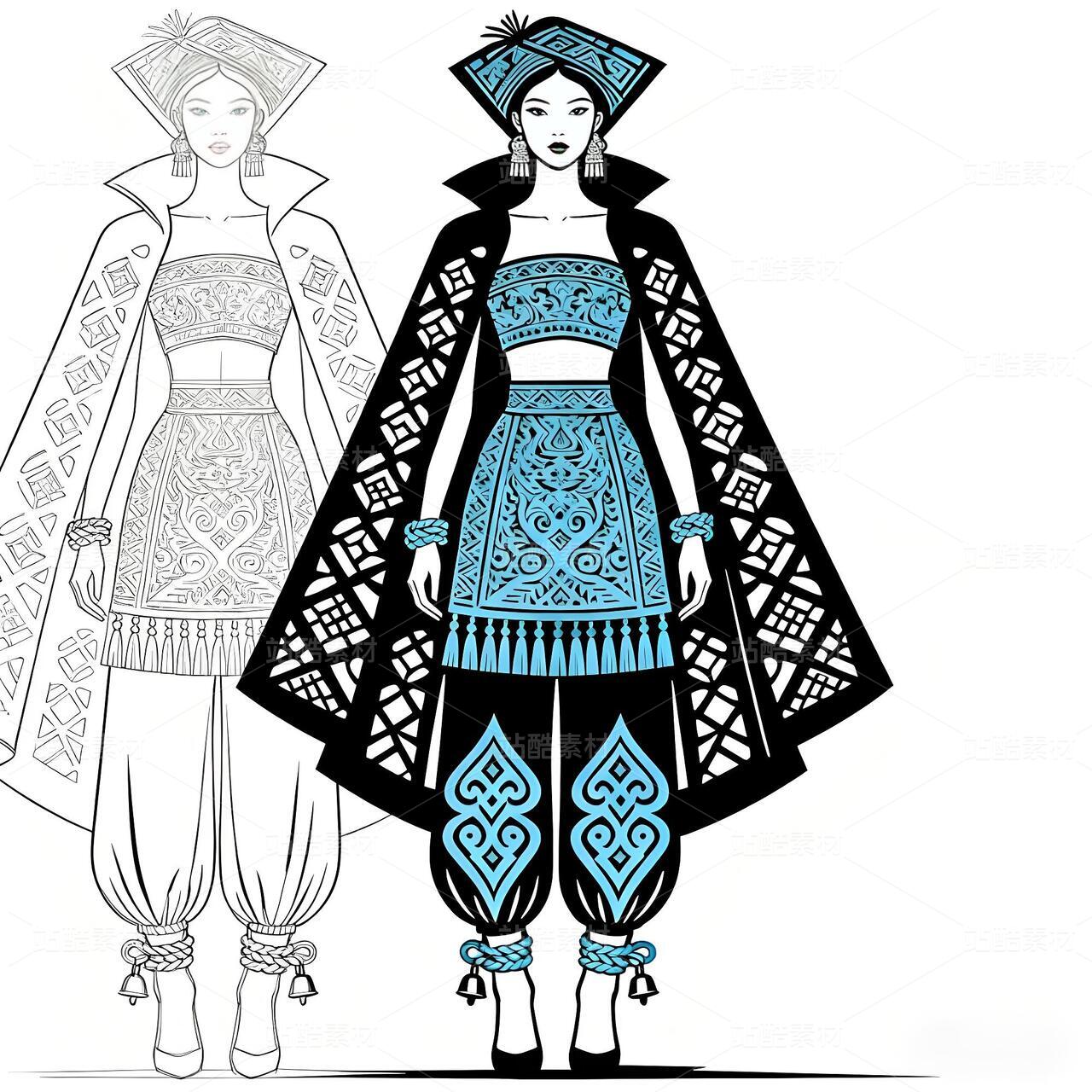 这款高定礼服以现代时尚手法重新诠释壮族非遗壮锦,将传统纹样融入当代设计。外套采用浅青与浅蓝渐变壮锦提花,oversize剪肩设计洒脱不失华美;内搭抹胸以浅粉柔化视觉,裤装贴合身形,利落显高。腰间壮锦腰带与流苏耳饰呼应,银饰点缀更添精致。整体既保留民族文化底蕴,又突破传统廓形,以浅系色彩碰撞出清新高级感,让壮锦在时装舞台上焕发新生。