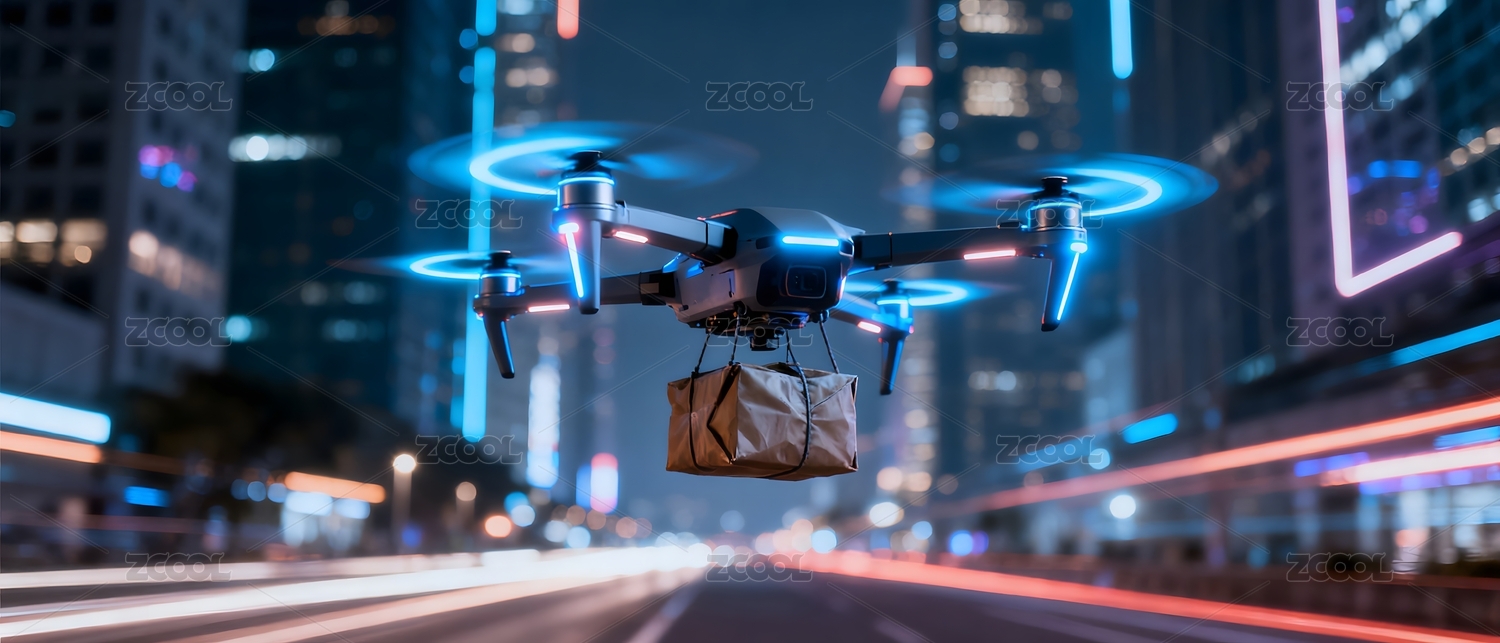 夜景城市无人机送货