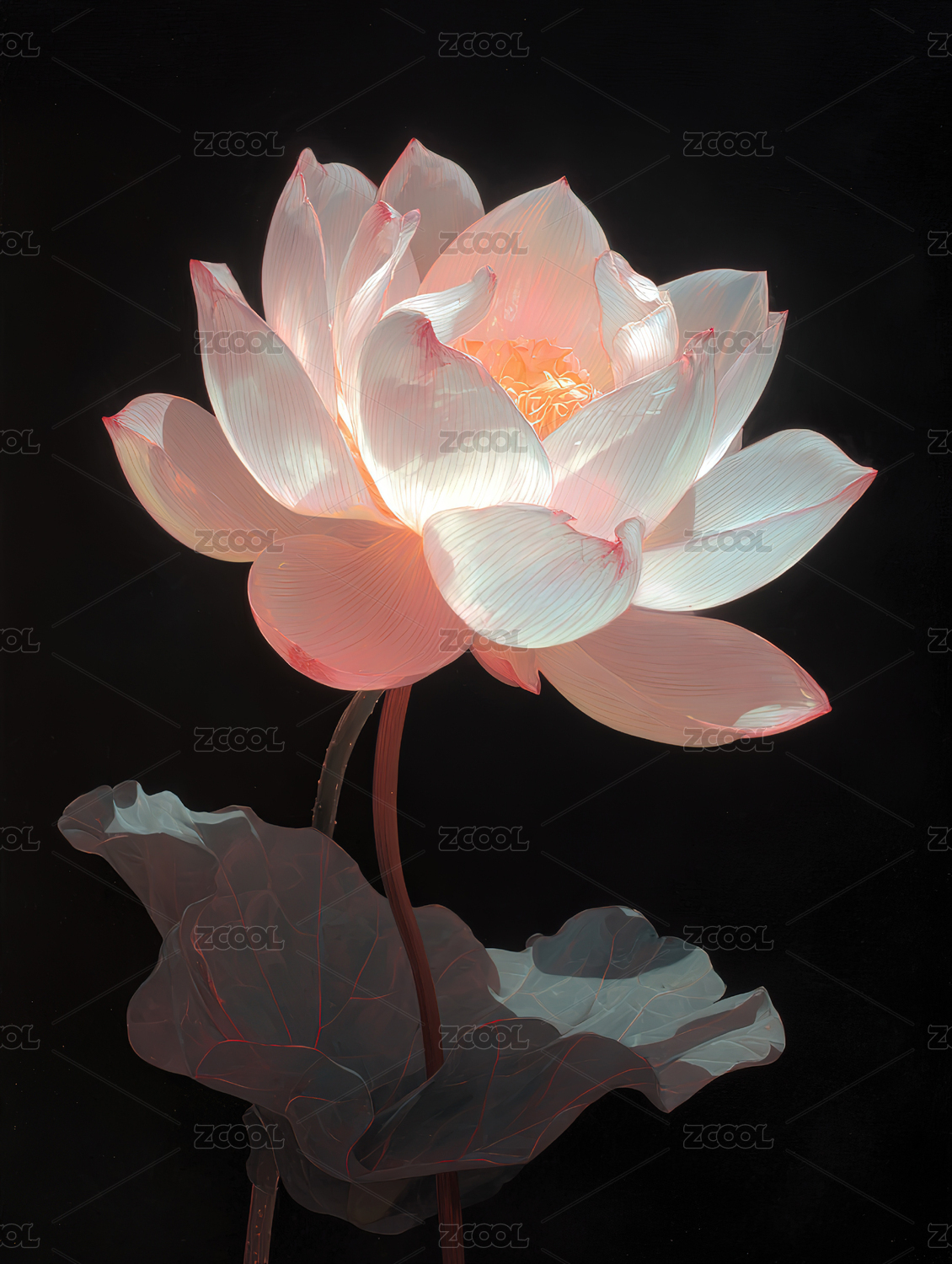 透明质感的莲花艺术插画