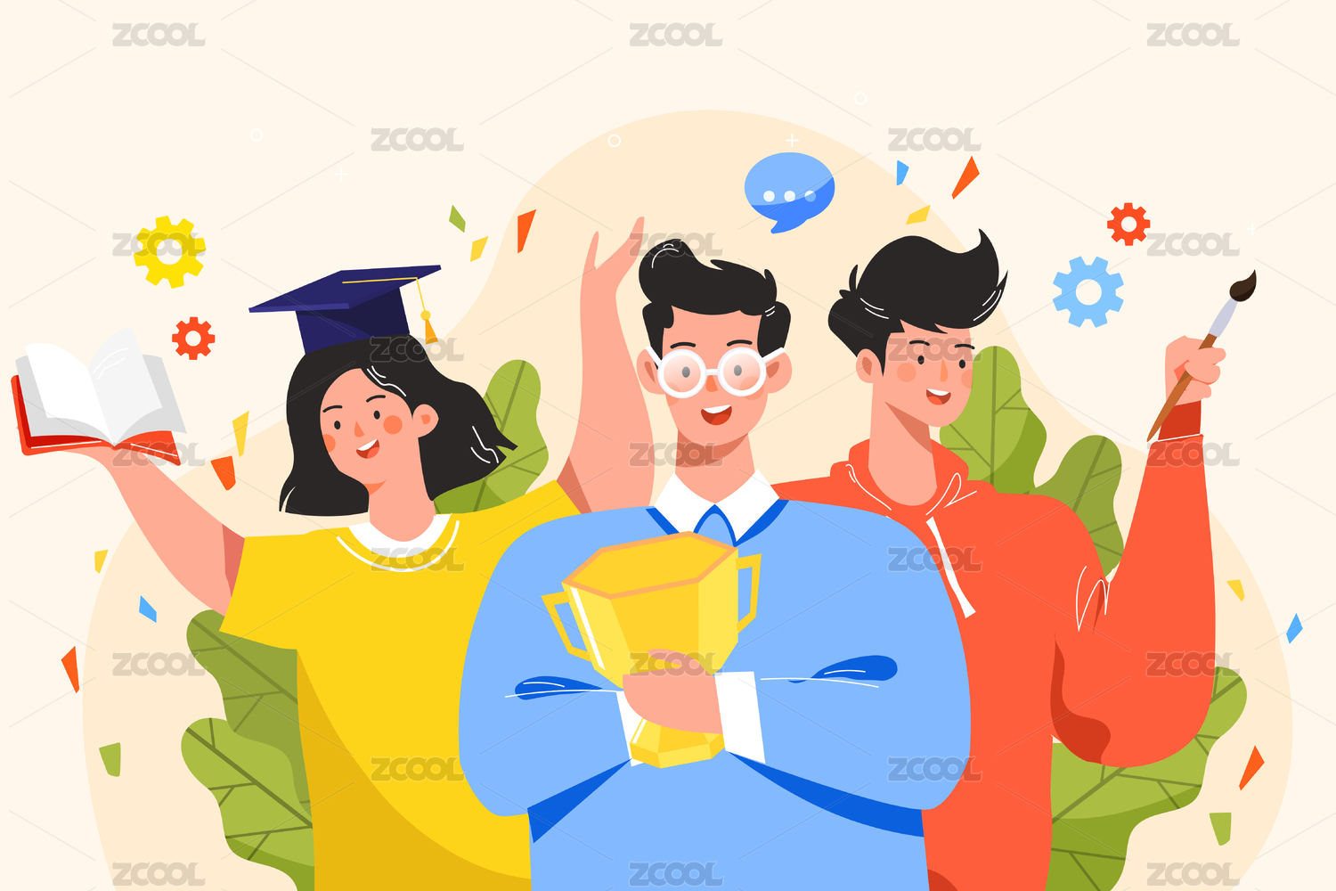 学生,书包,书籍,奖杯,足球,插画,人物,校园,欢乐,元素