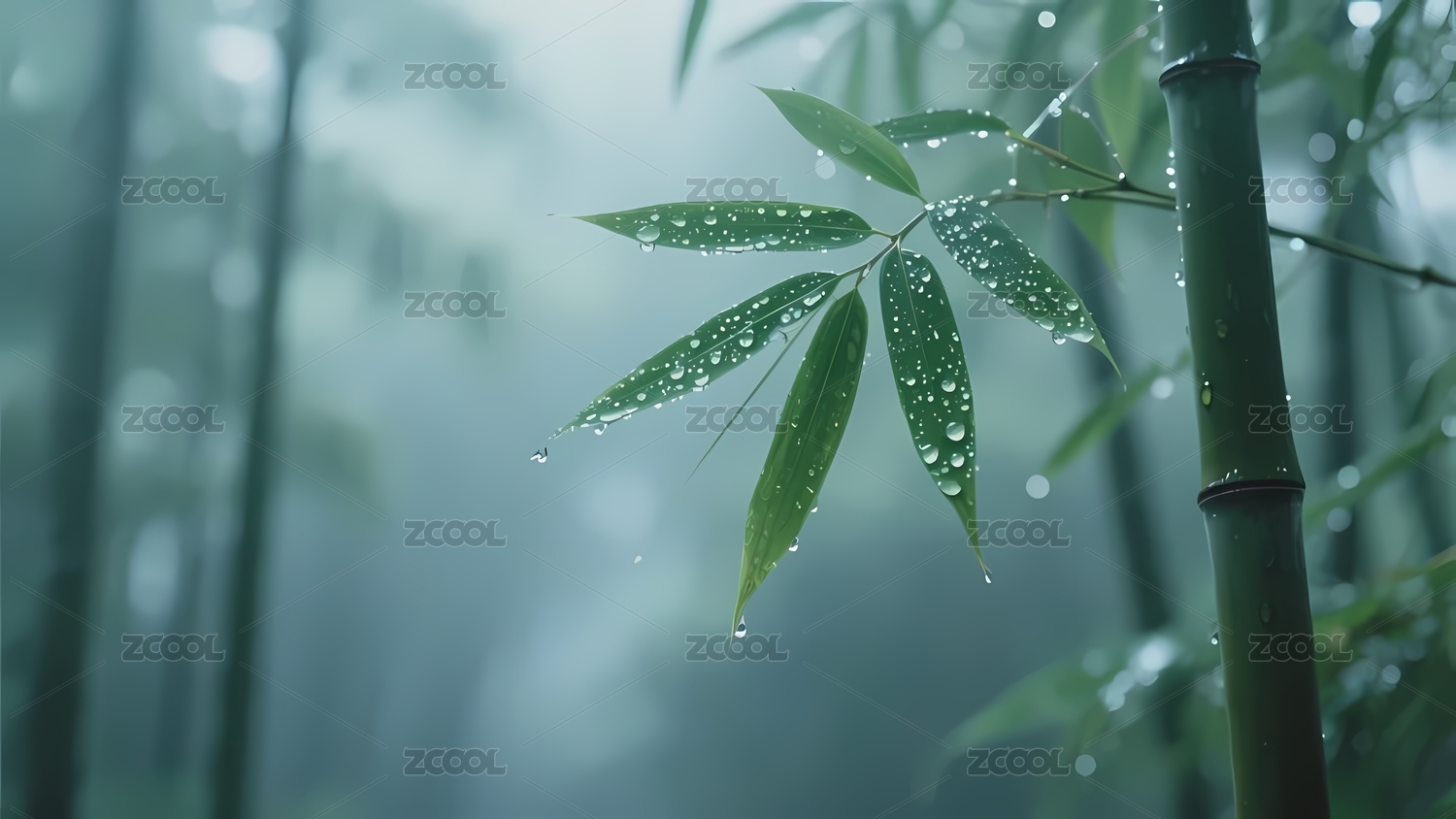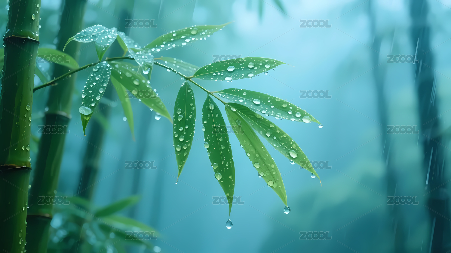 竹子,竹叶,水珠,自然,清新,绿色,植物,画面元素,插画,矢量