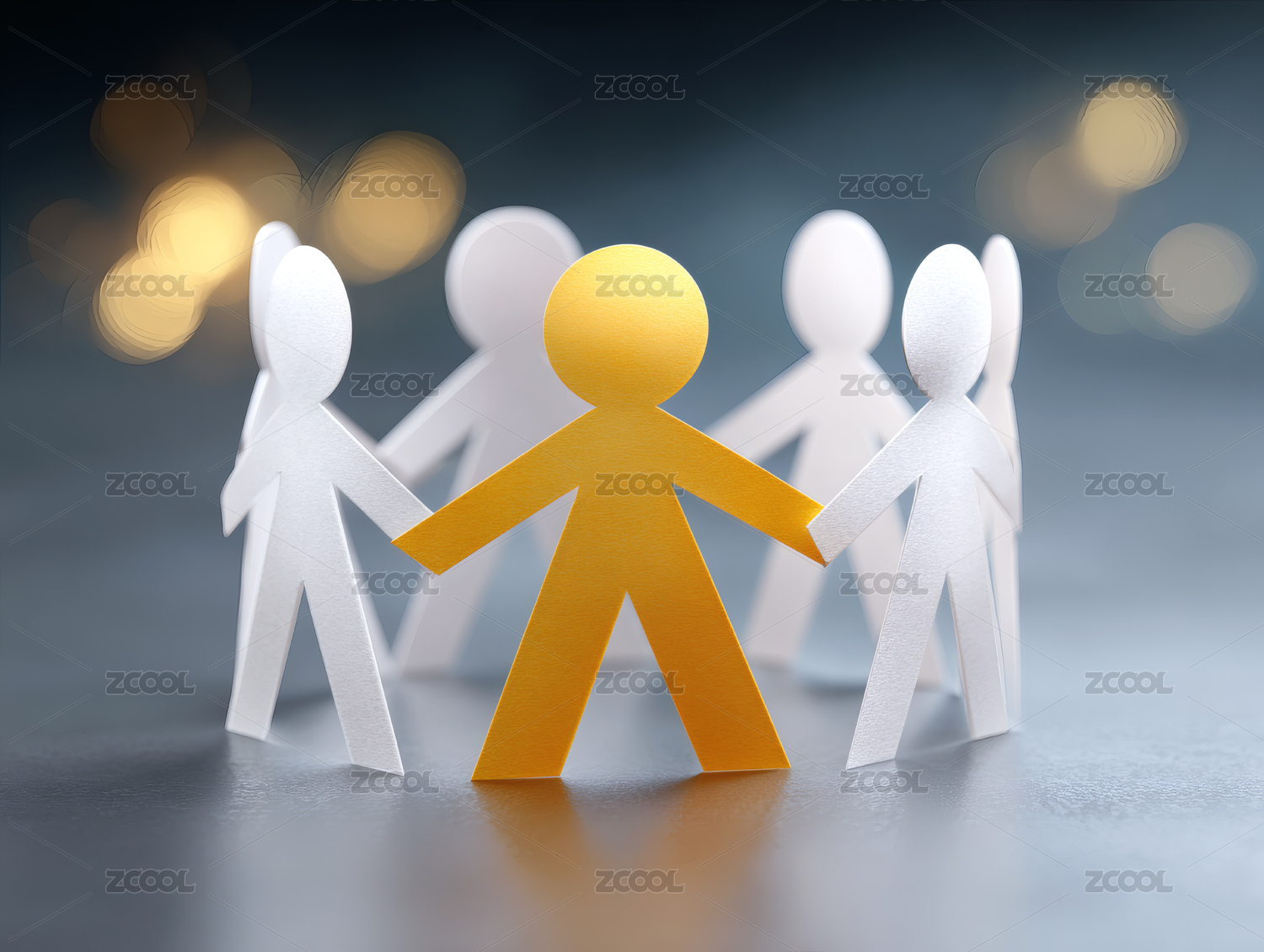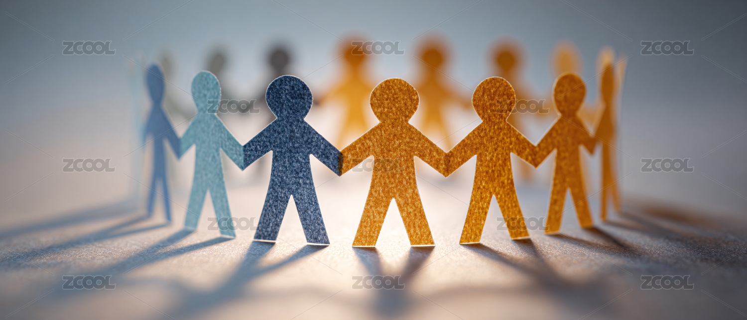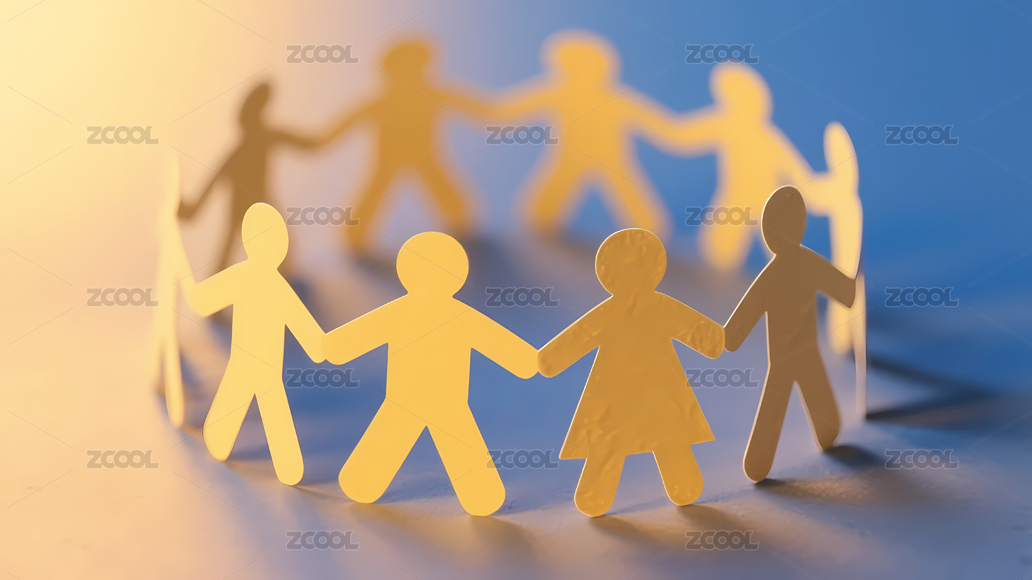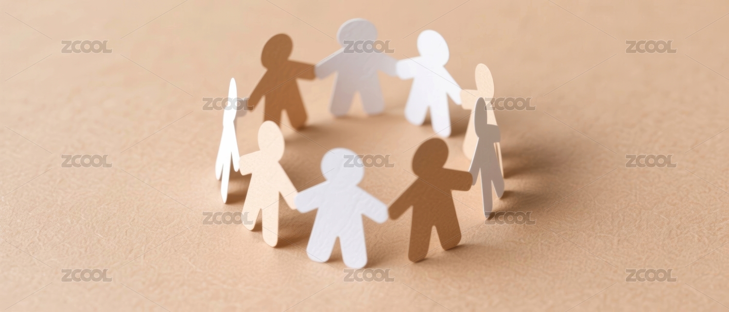 主视觉,商业,壁纸,纸人,圆环,温馨,团结,场景,牵手,人形