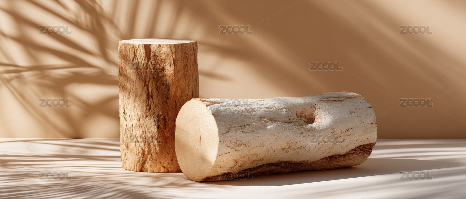 自然光影下的原木静物