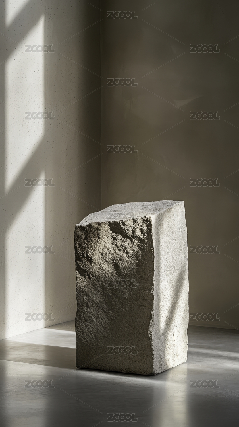 棕墙光影与石头块组合