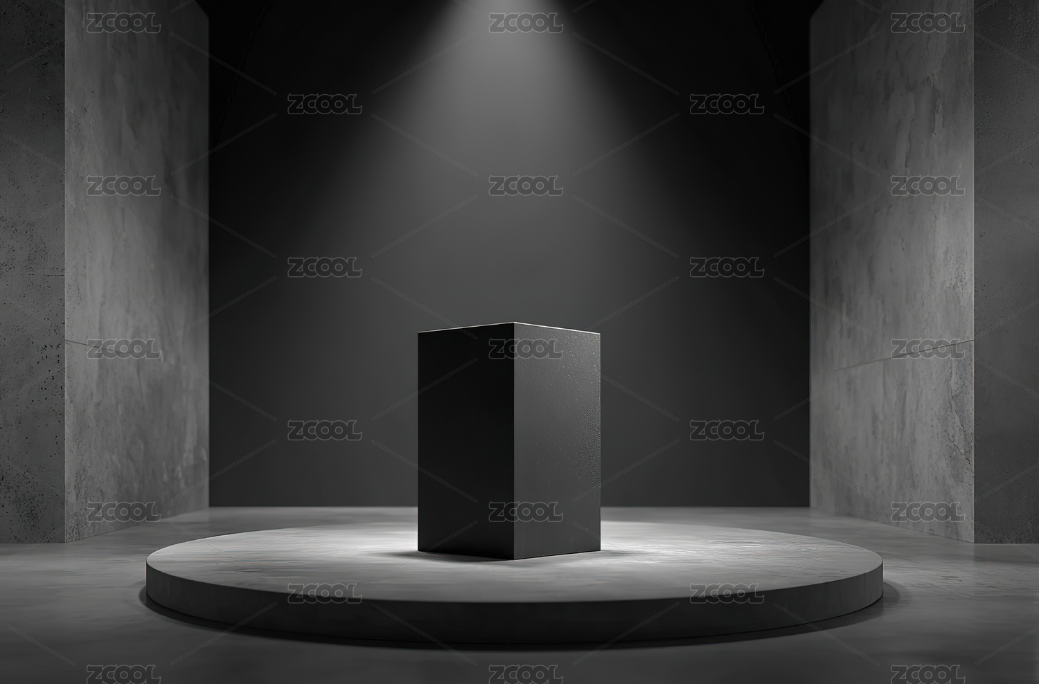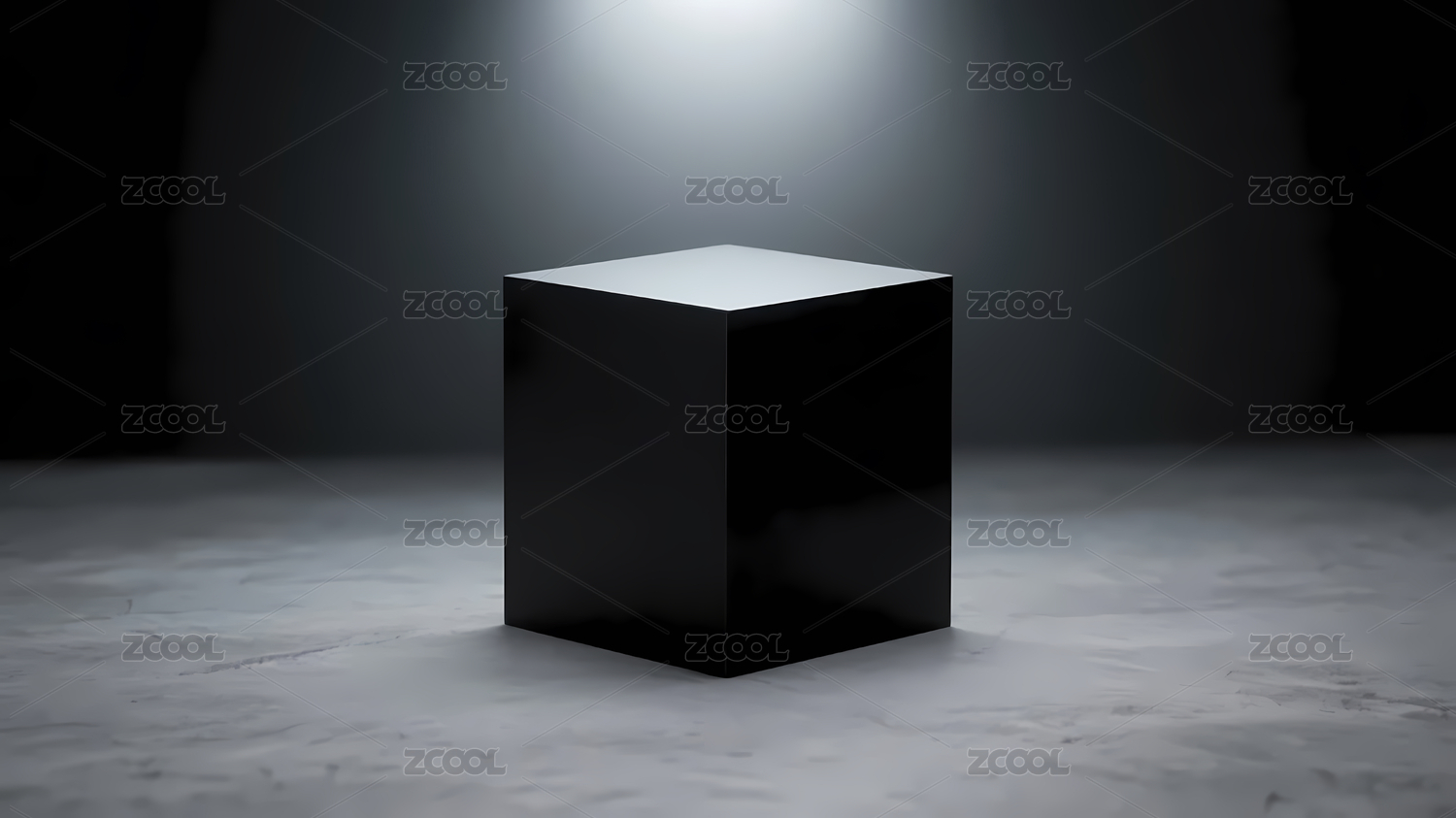 聚光灯下的黑色立方体