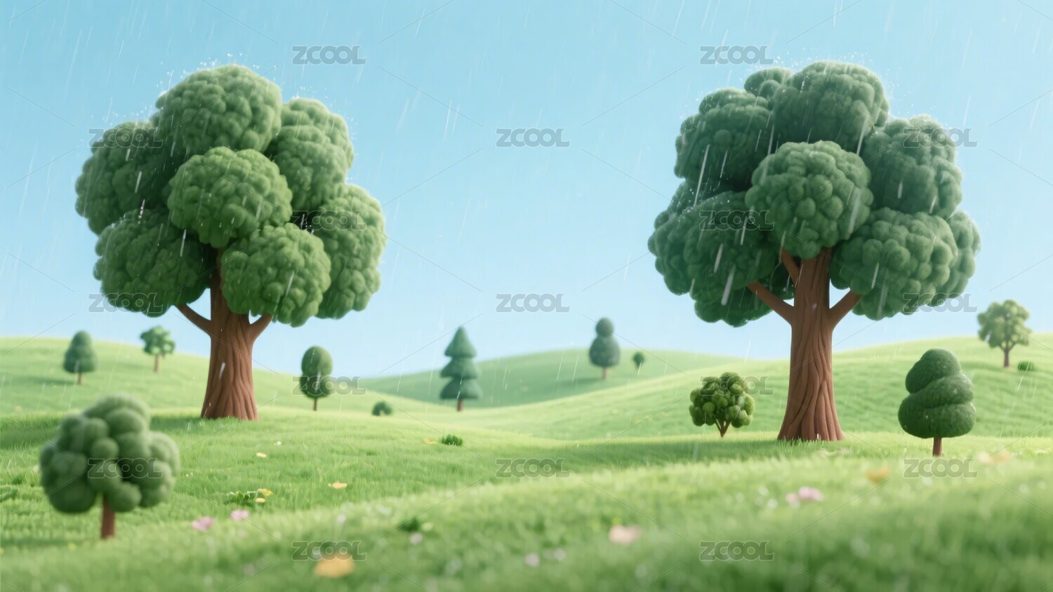 草地,树木,绿色,插画,矢量,自然,风景,画面元素,主题,清新