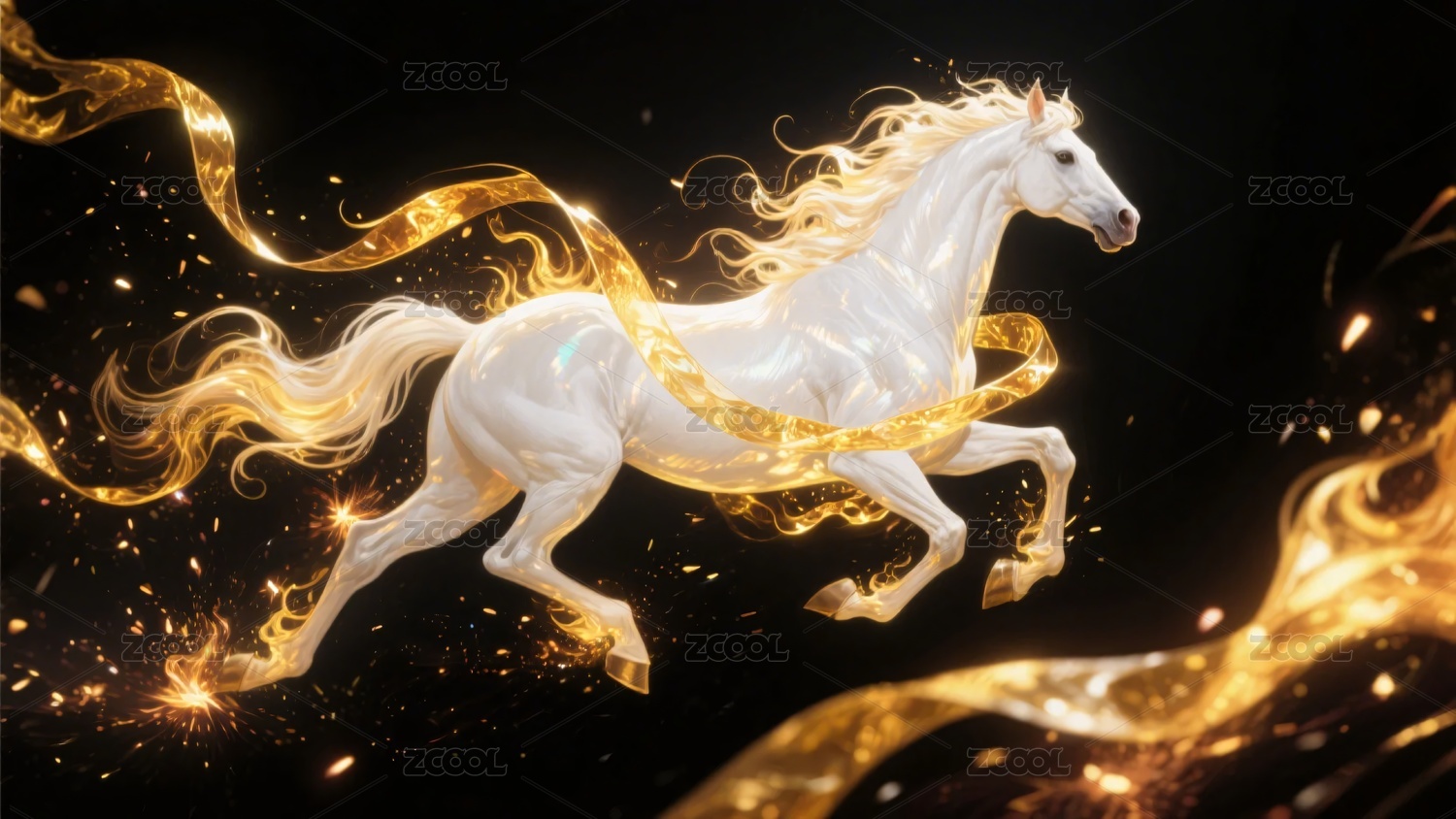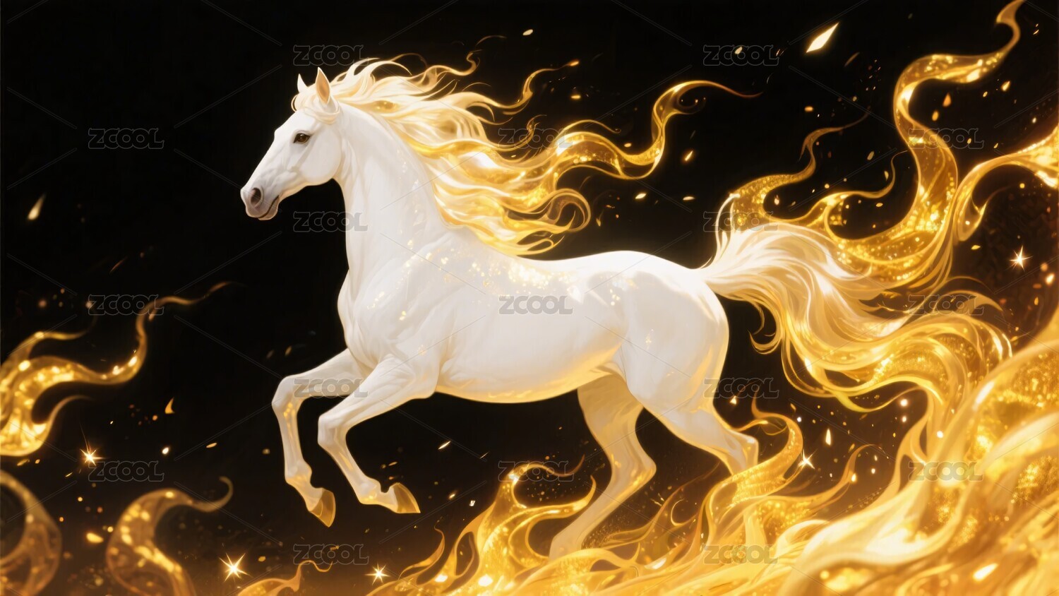 中国风金色汗血宝马奔跑的红色喜庆背景