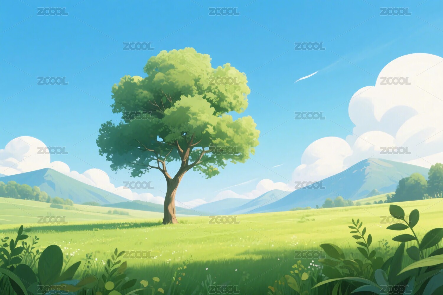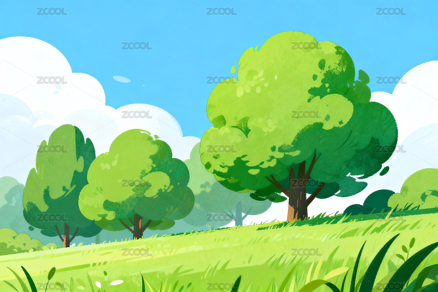 草地,树木,气泡,天空,插画,风景,自然,清新,矢量,模板