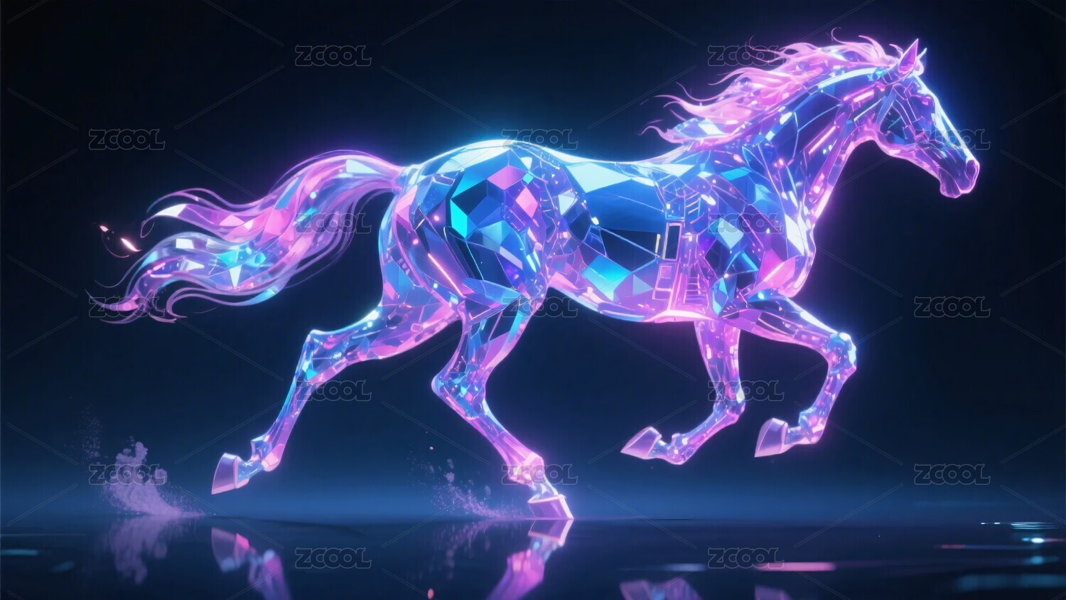 梦幻炫彩奔跑的透明骏马