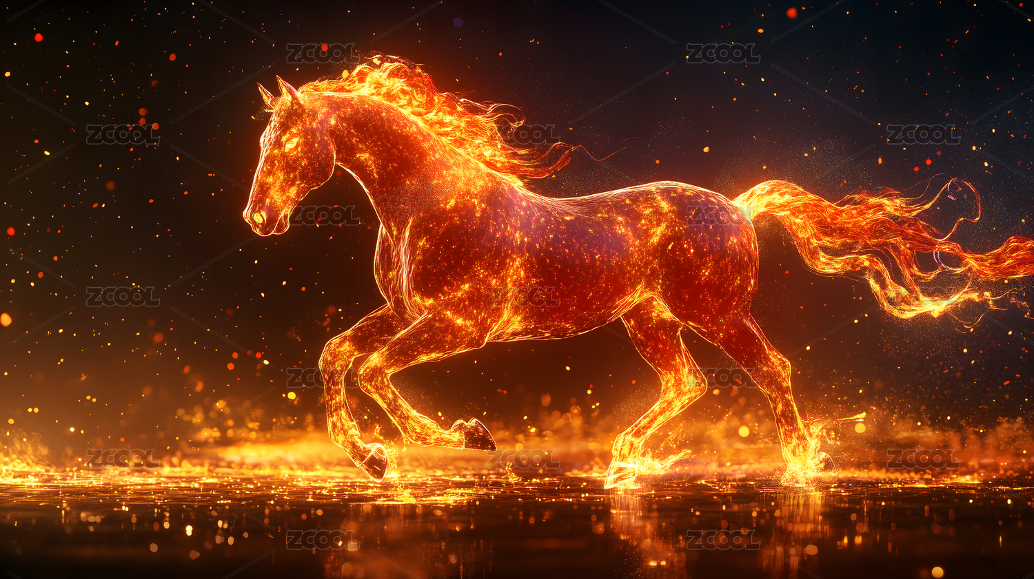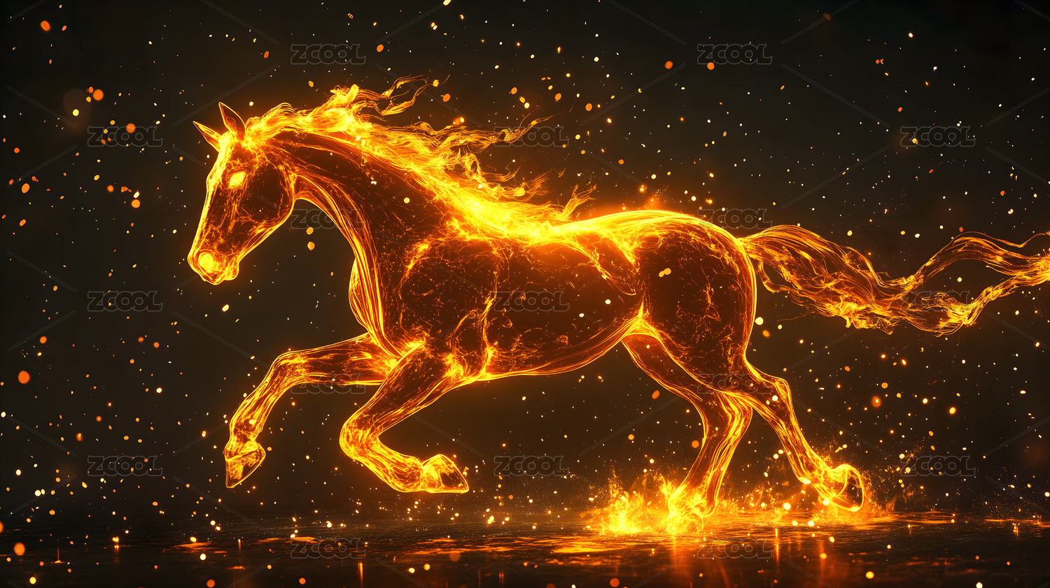 一只燃烧火焰的奔马
