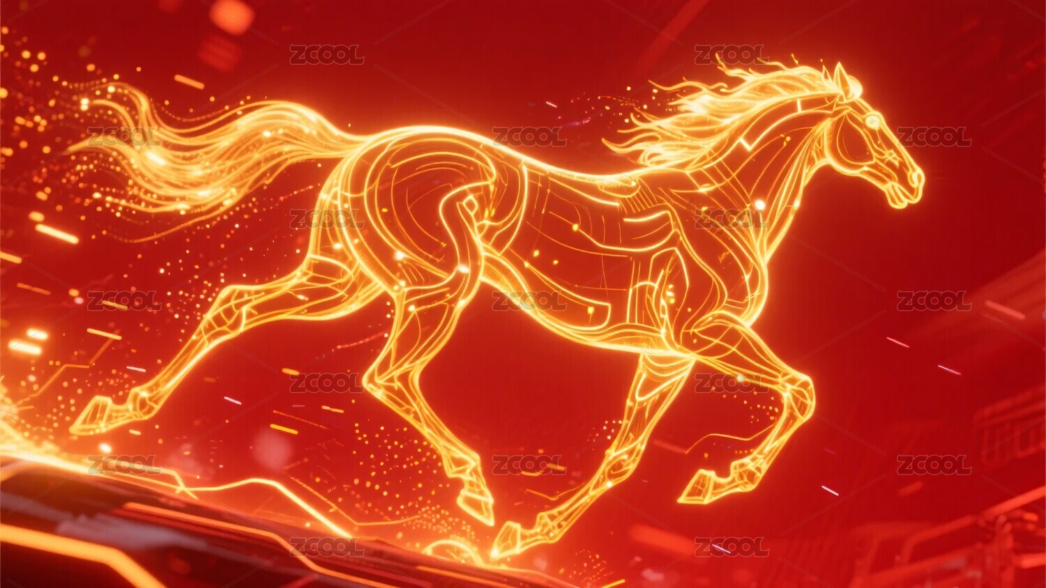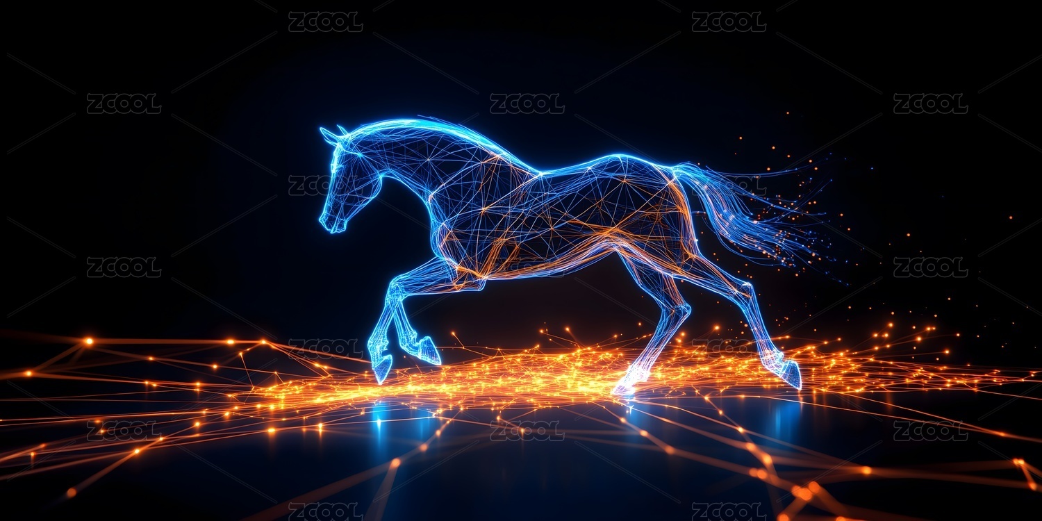 马年主题背景科技感奔跑的骏马