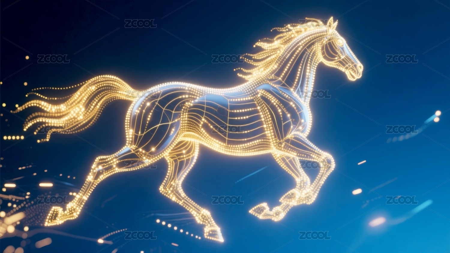 金色光影奔跑的线条马