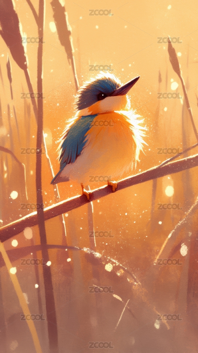 晨光中的翠鸟