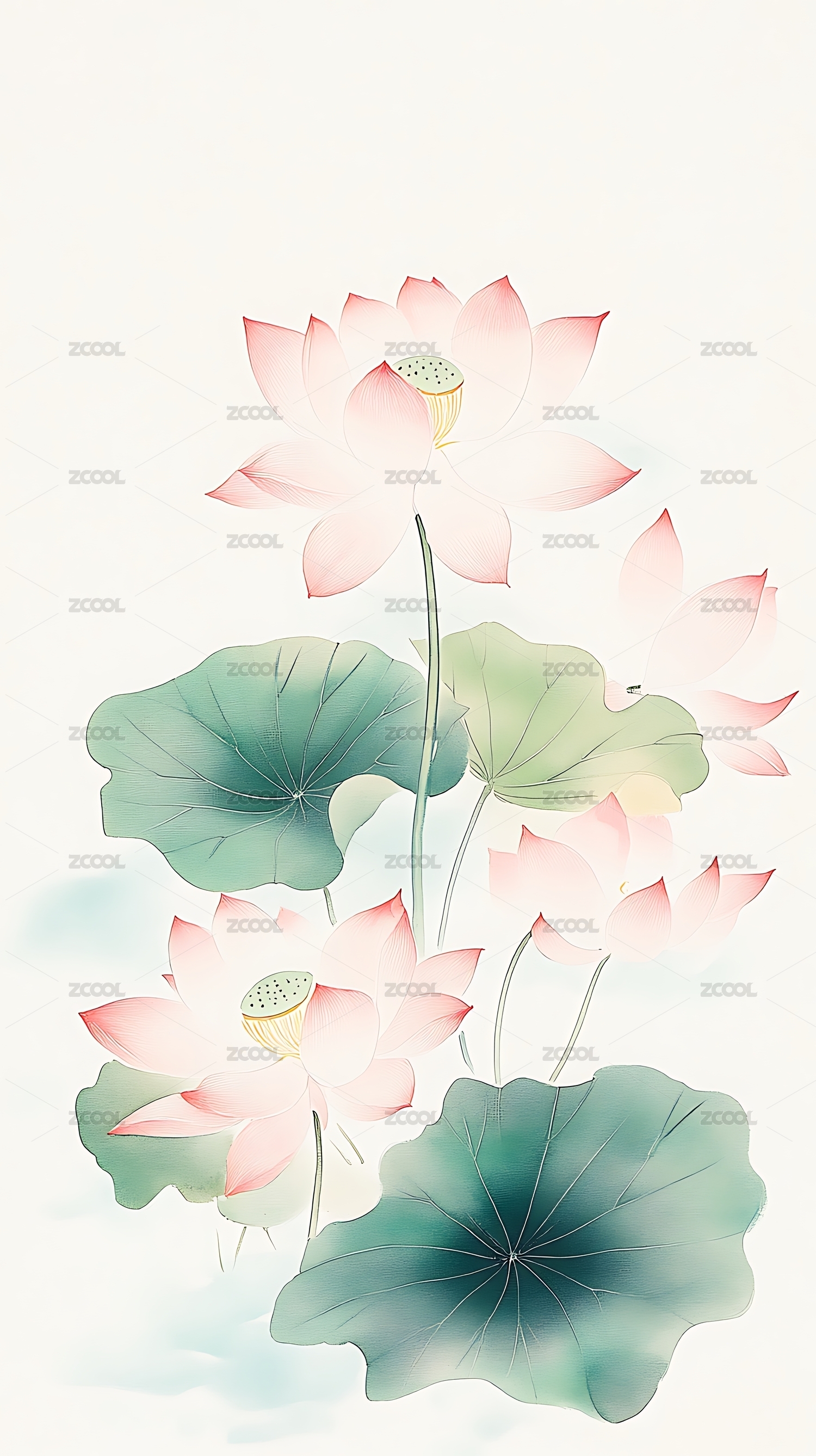 荷花植物国风插画背景