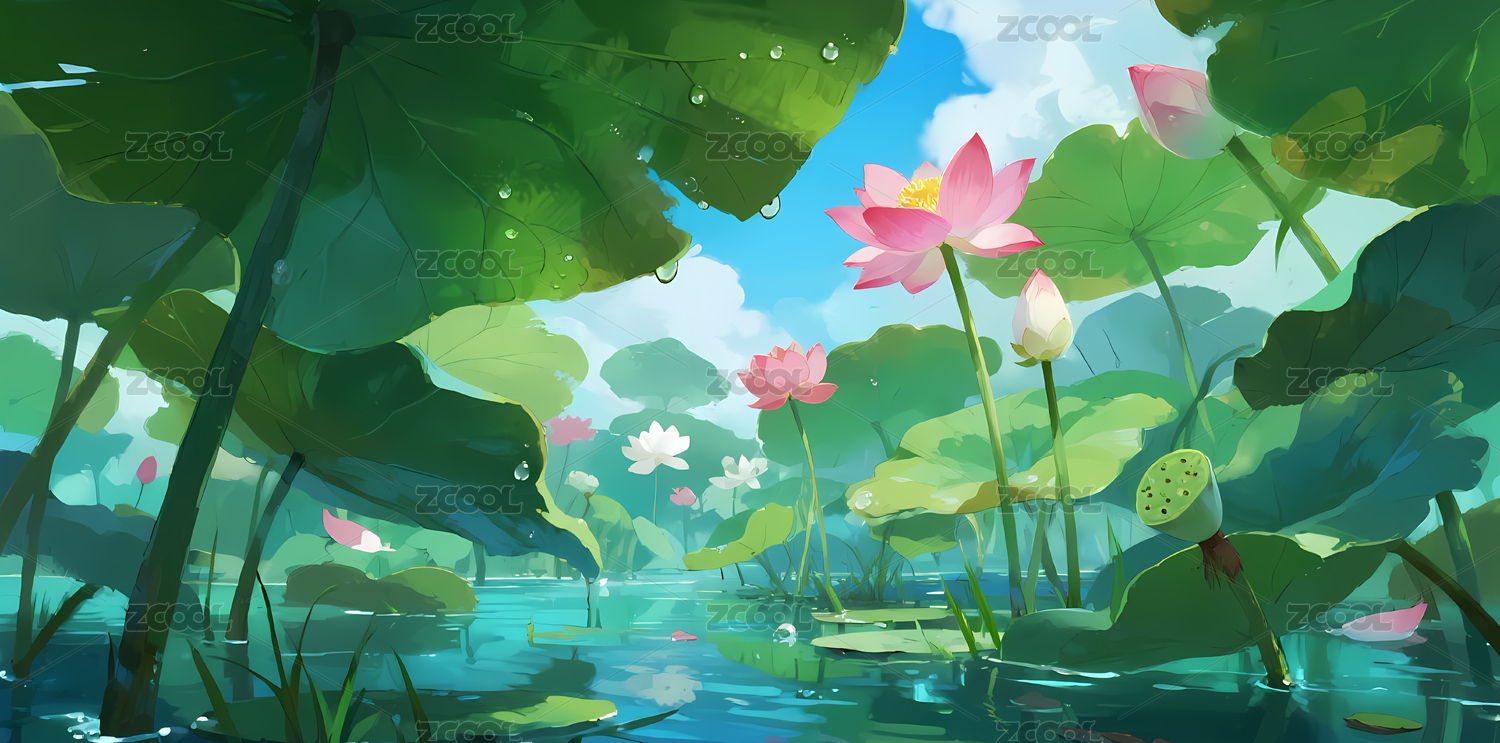 荷花,荷叶,荷塘,插画,矢量,风景,自然,清新,淡雅,水墨风
