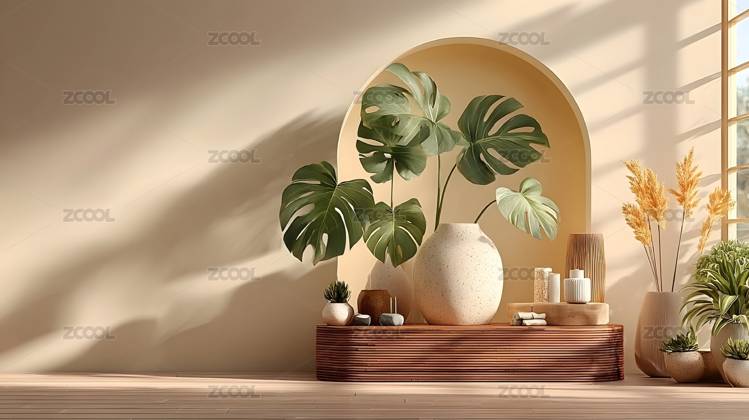 龟背竹与干花的静谧之美
